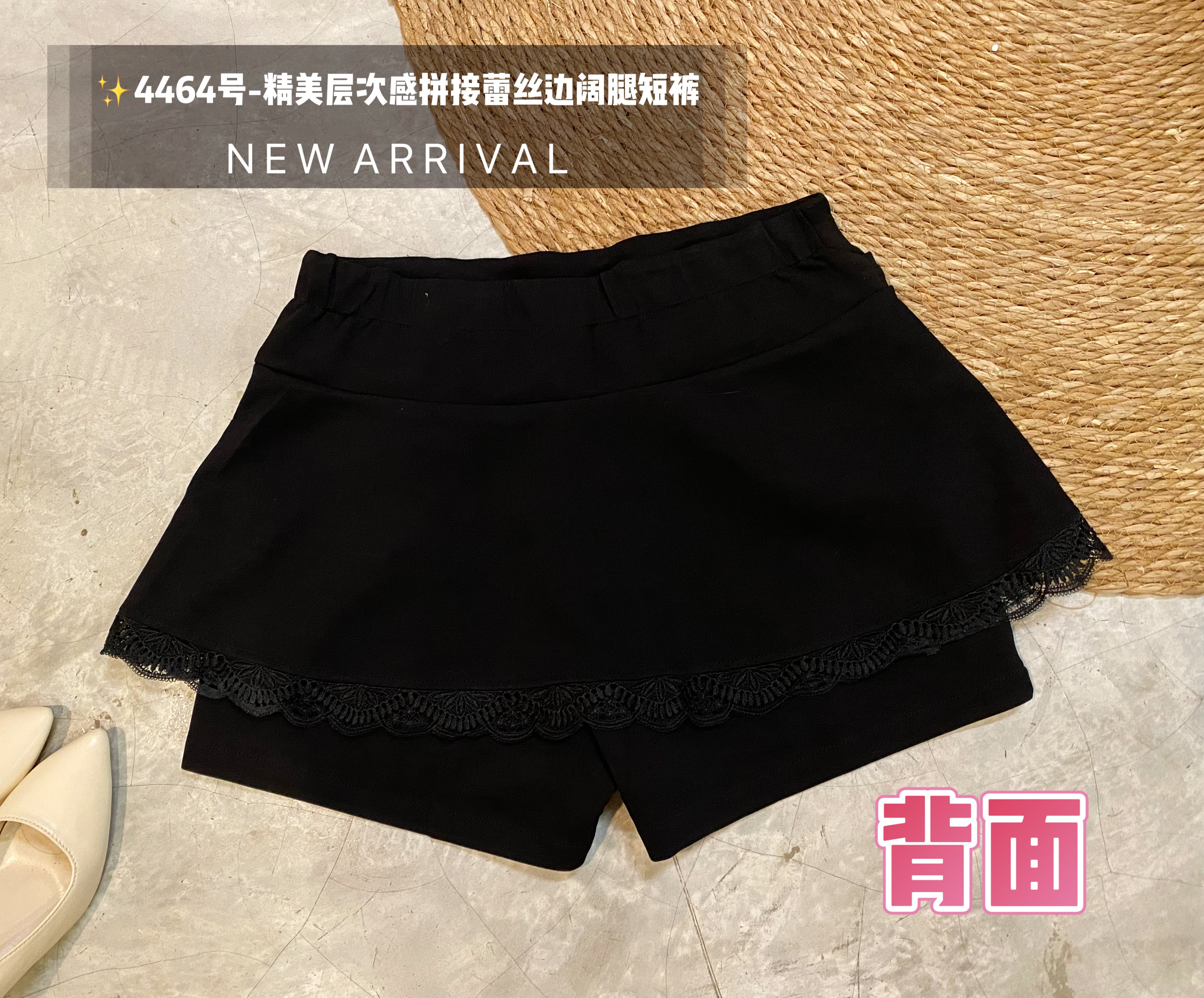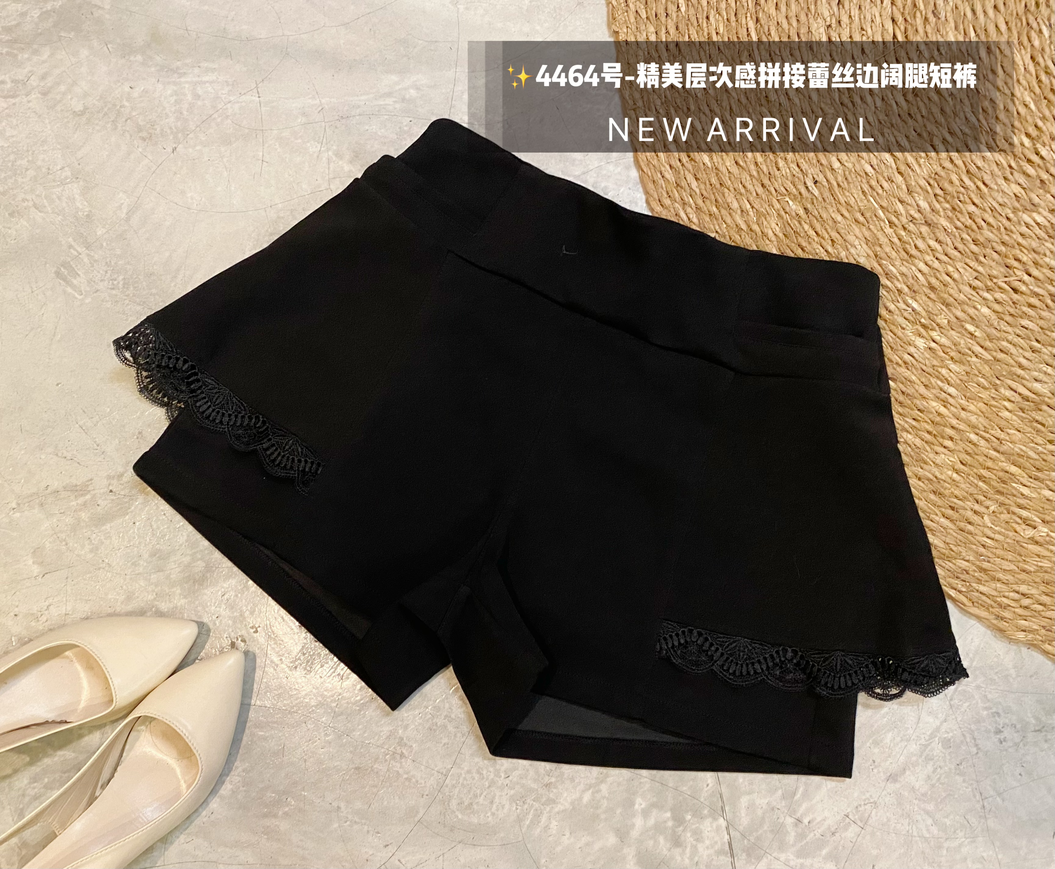 ✨4464号-精美层次感拼接蕾丝边阔腿短裤