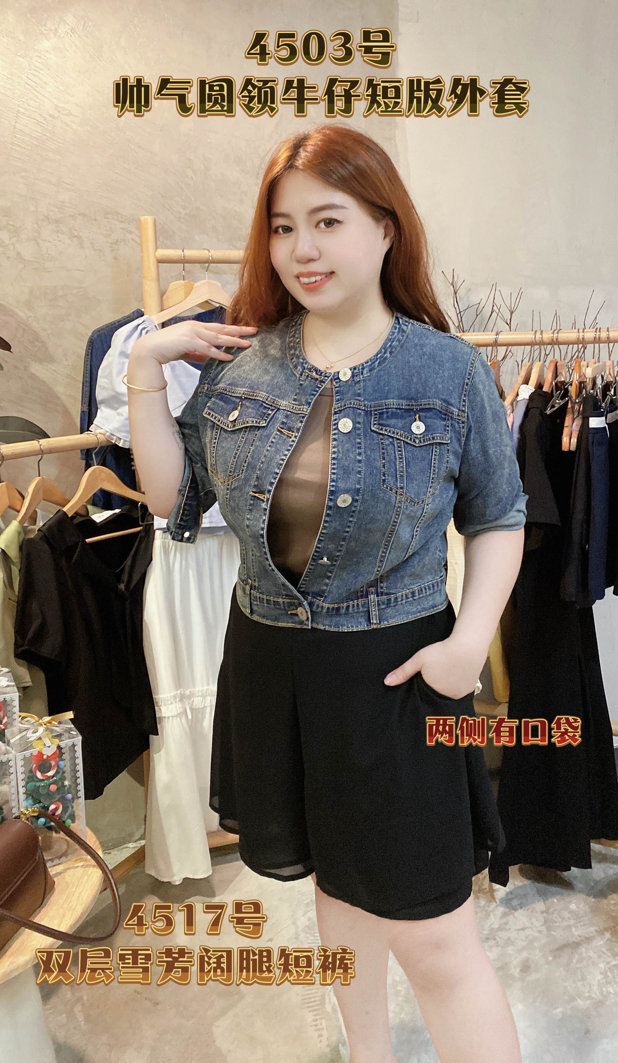✨4503号-帅气圆领牛仔短版外套