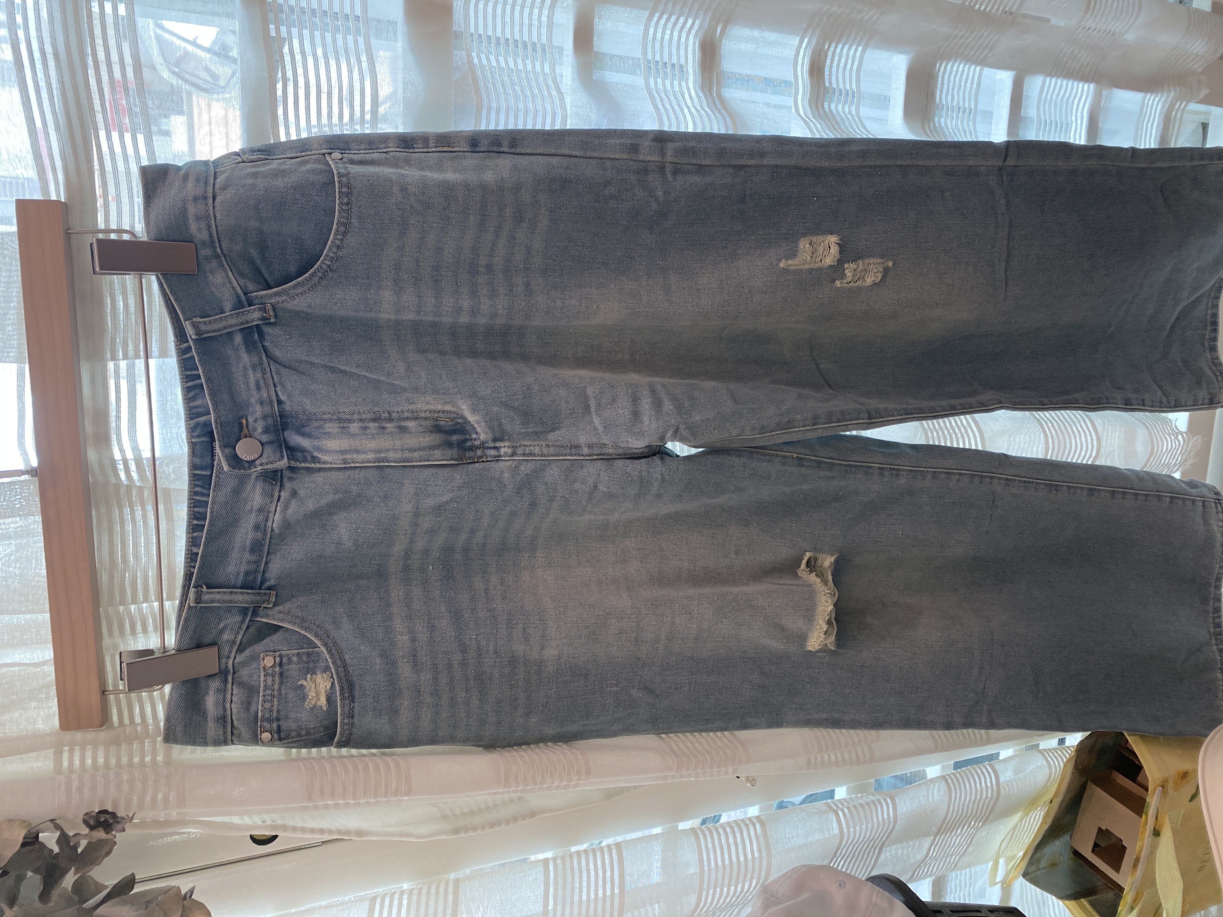 ✨4546号-帅气洗旧腰带牛仔阔腿长裤