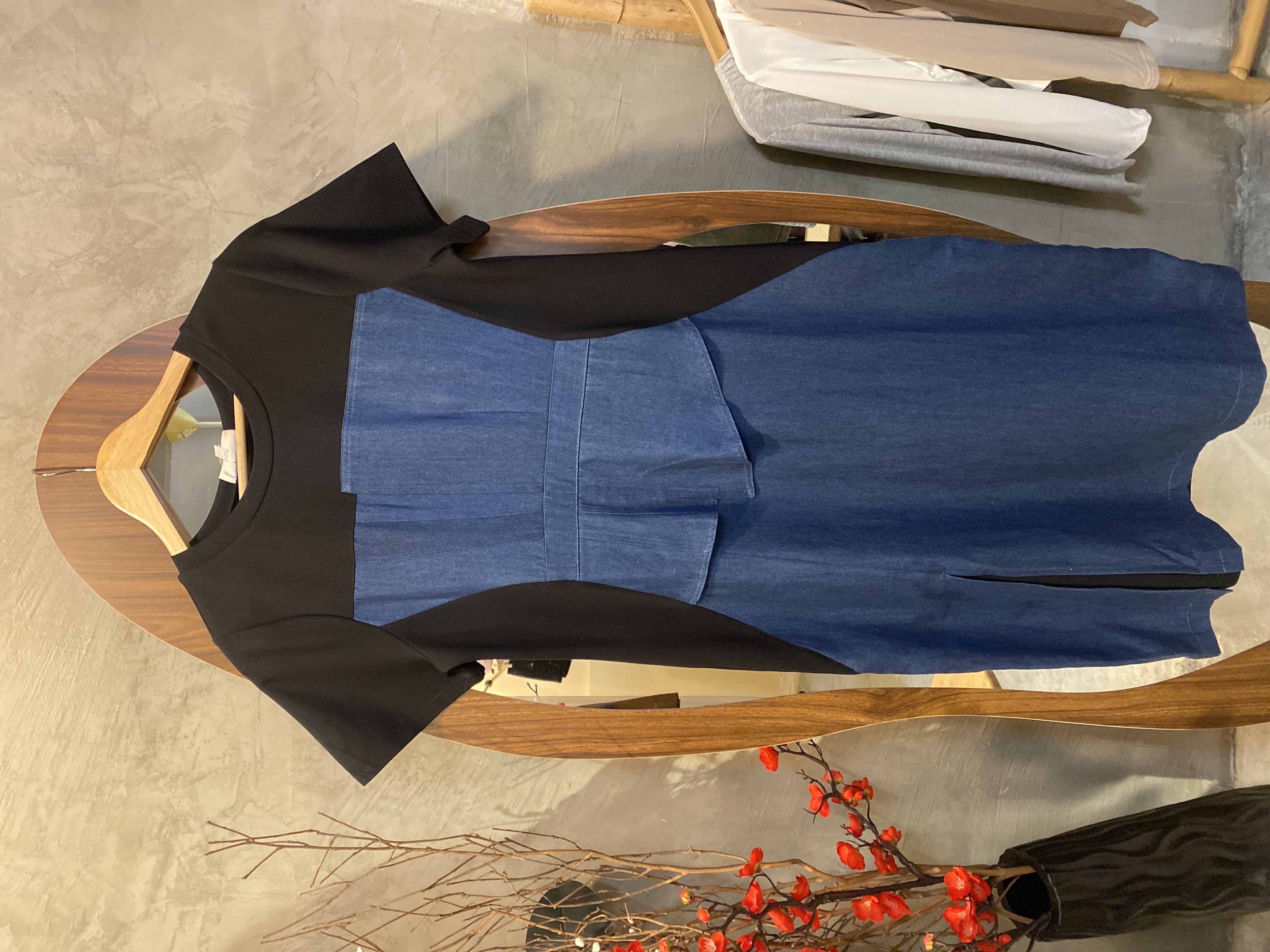 ✨4548号-超舒服拼接牛仔修身连身裙