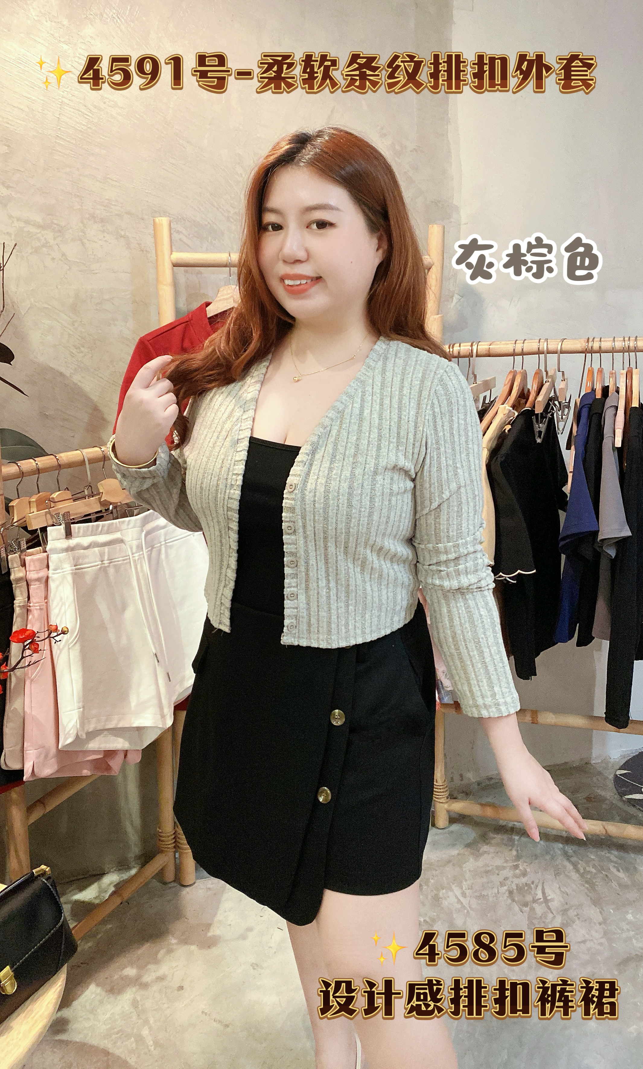 杏色BG,黑色BK,灰色GY,灰棕色GB 胸围平铺Bust94-114 cm 衣长Length 45cm 💰RM45