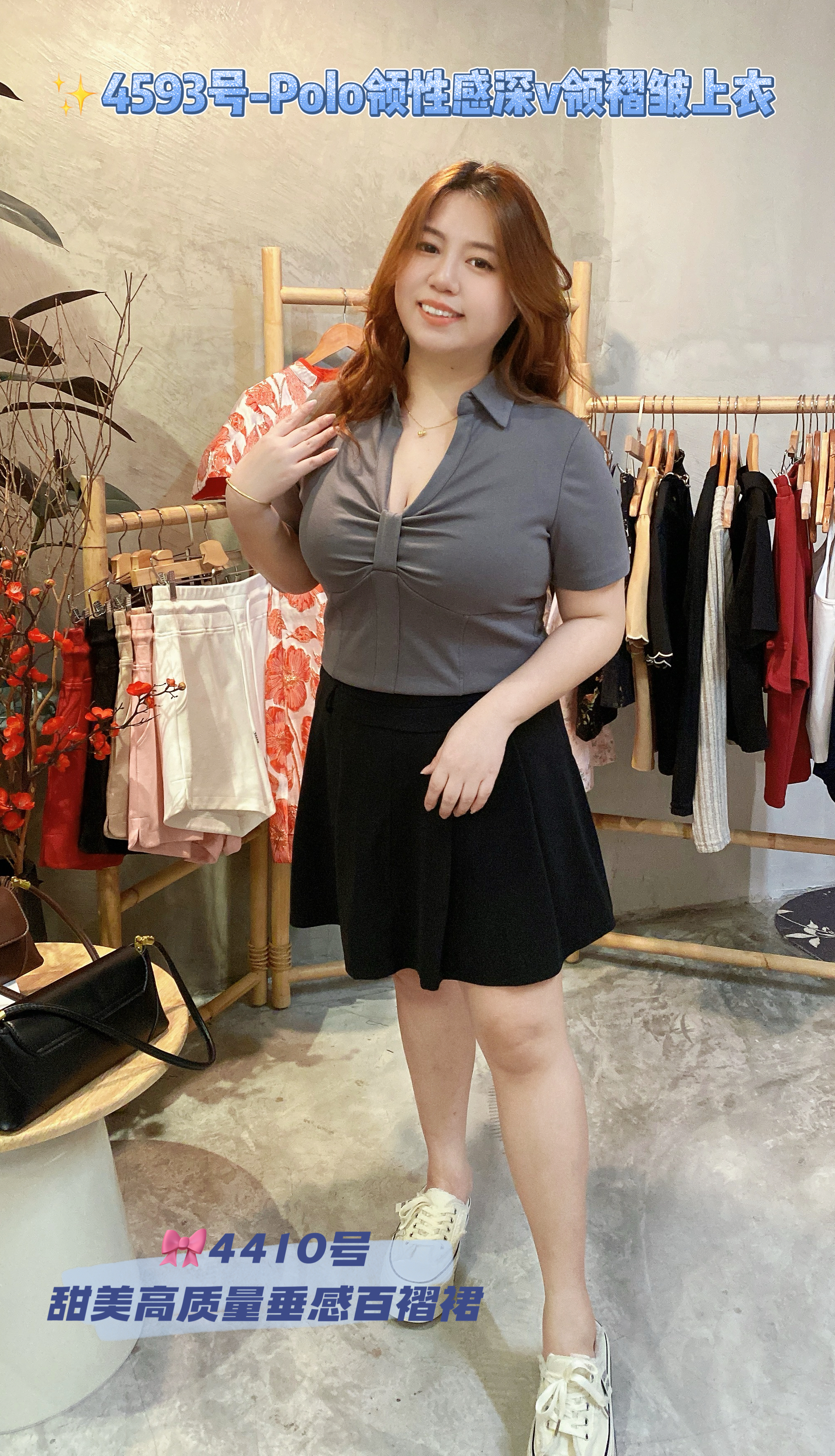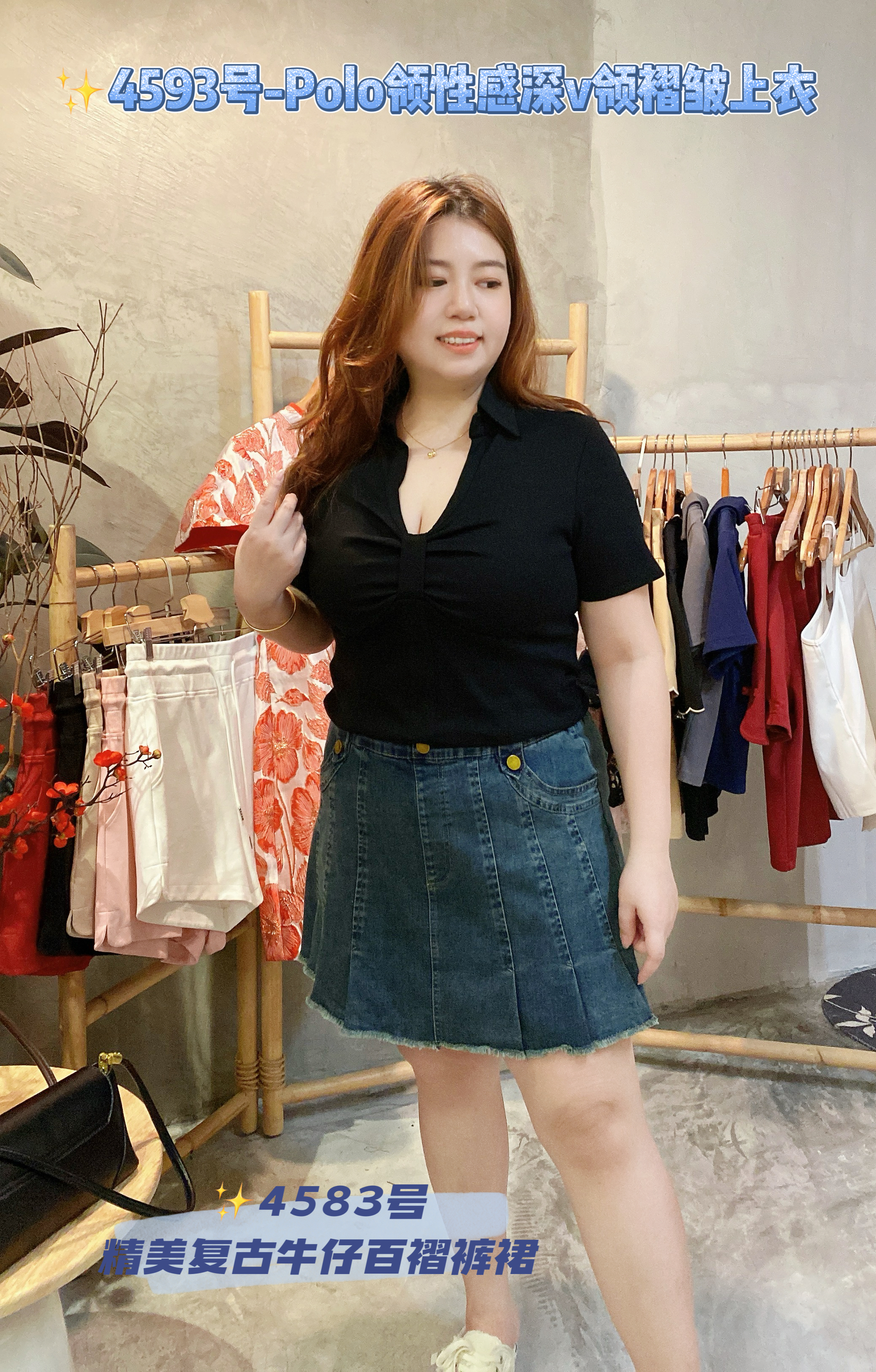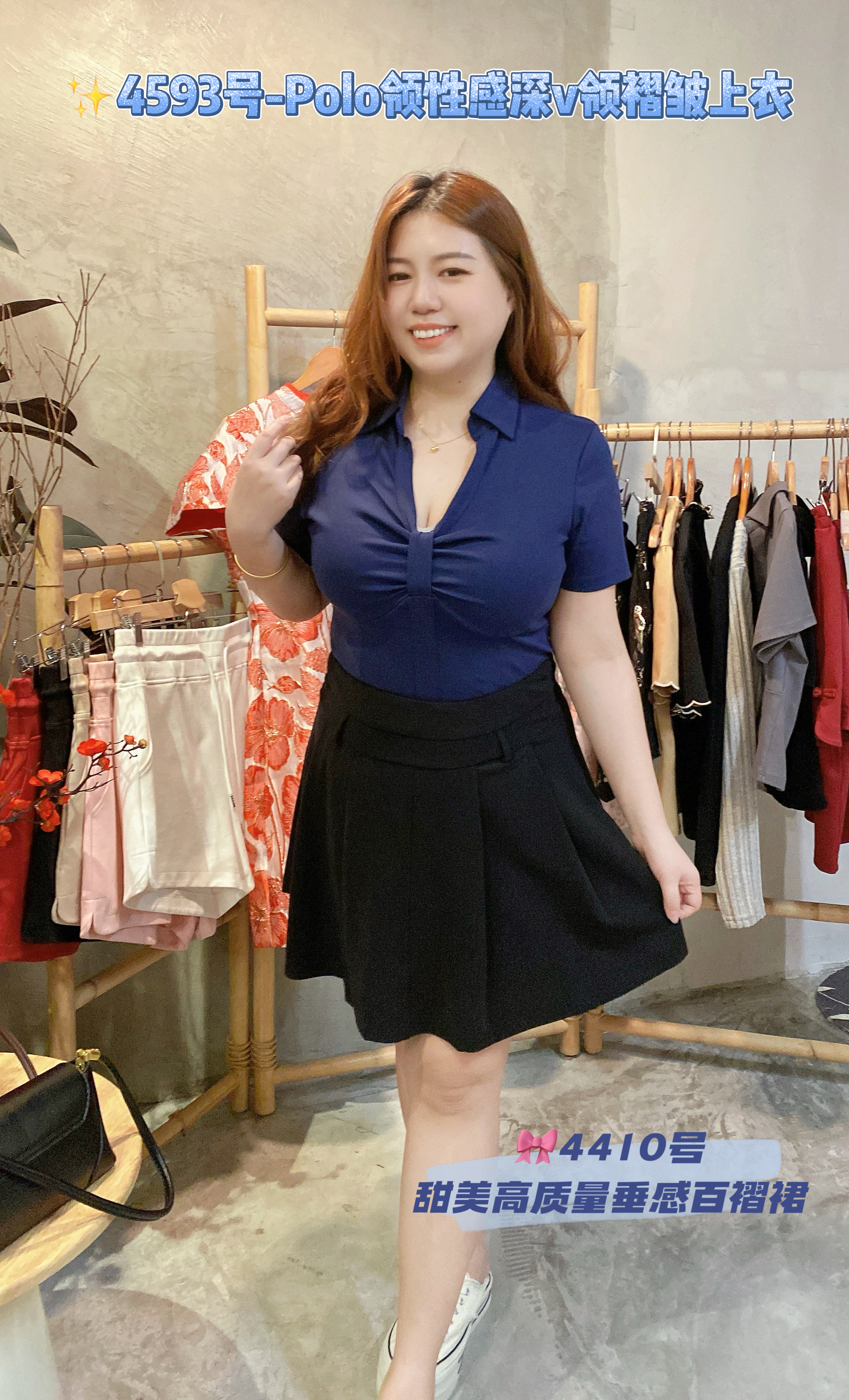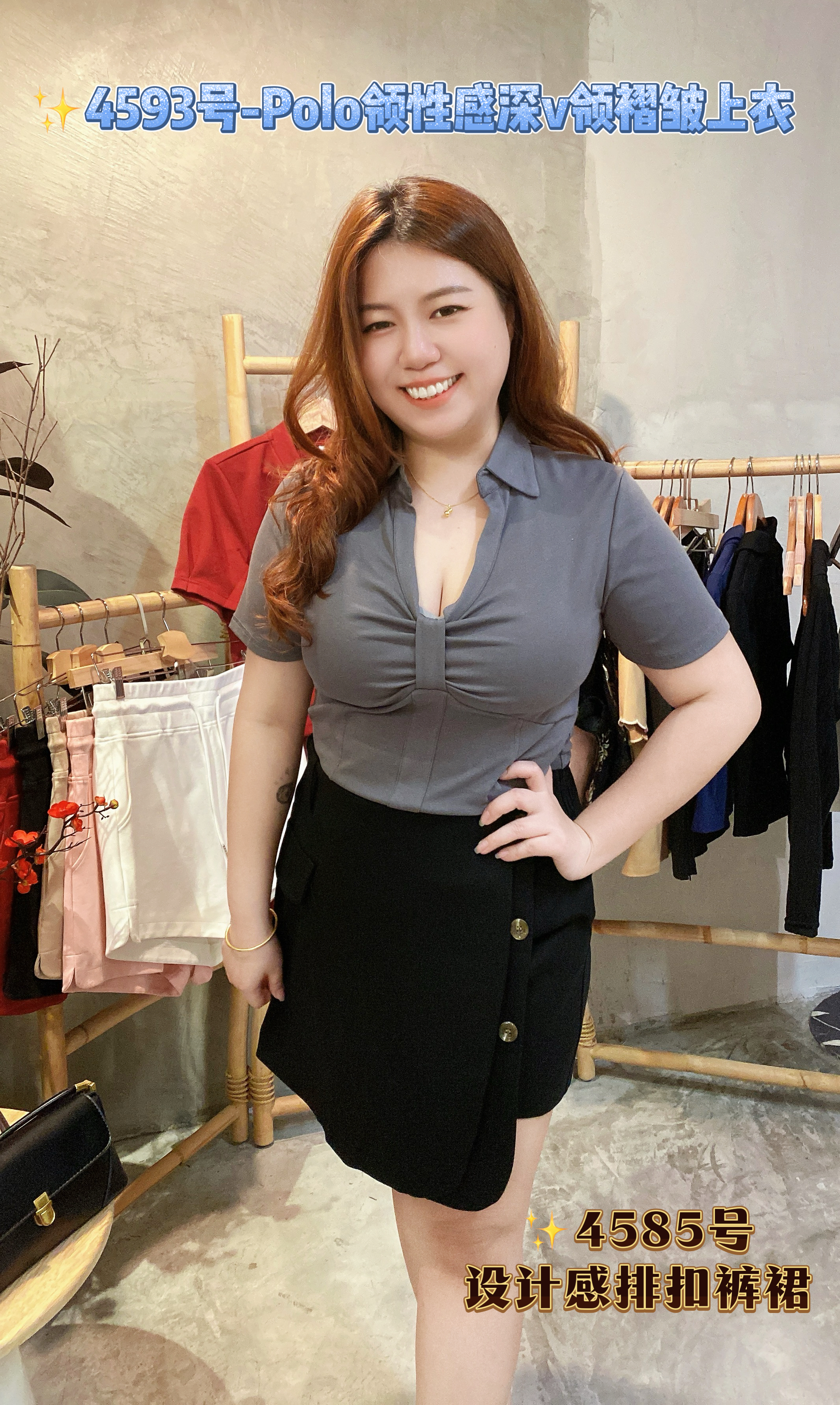 ✨4593号-Polo领性感深v领褶皱上衣
