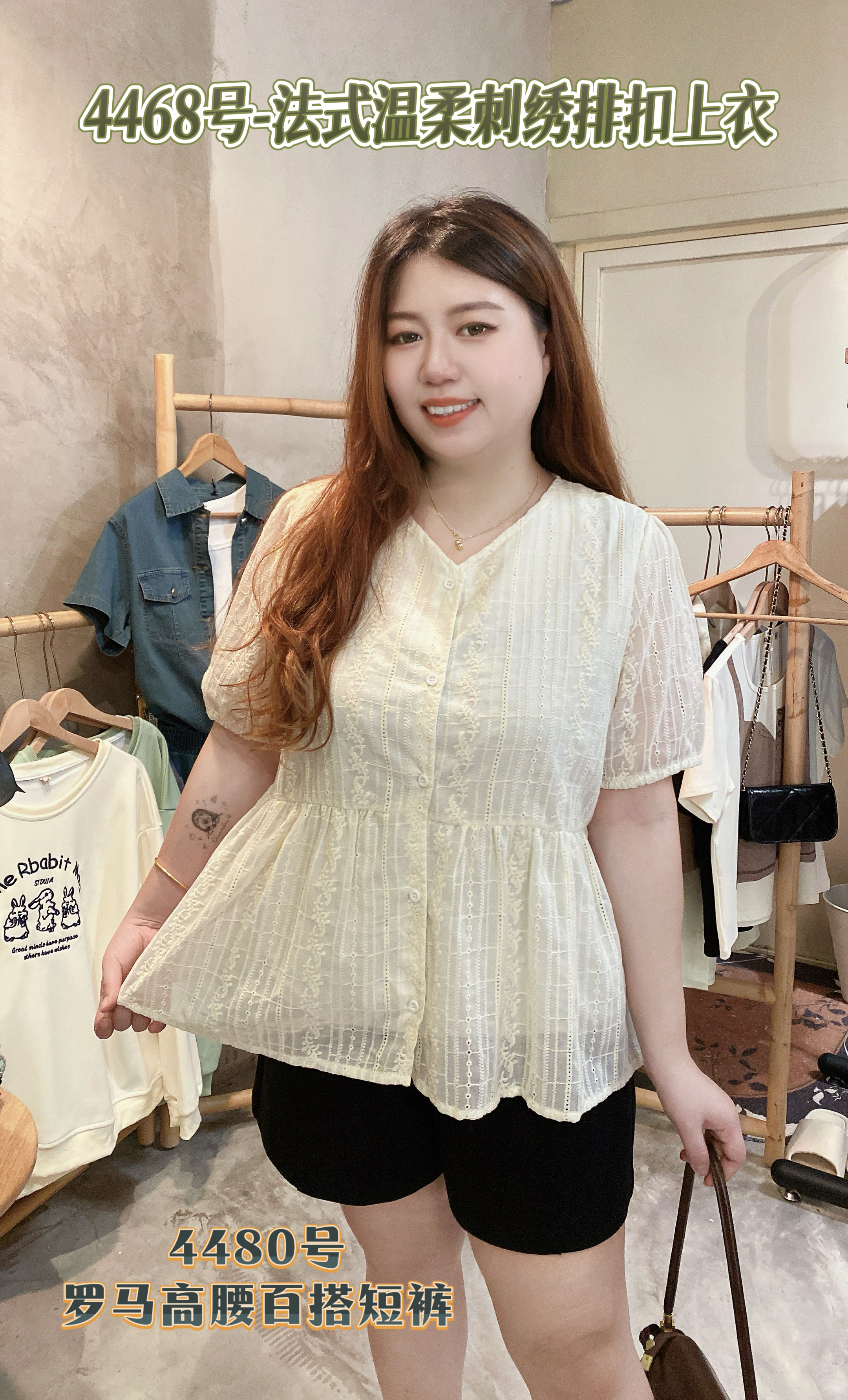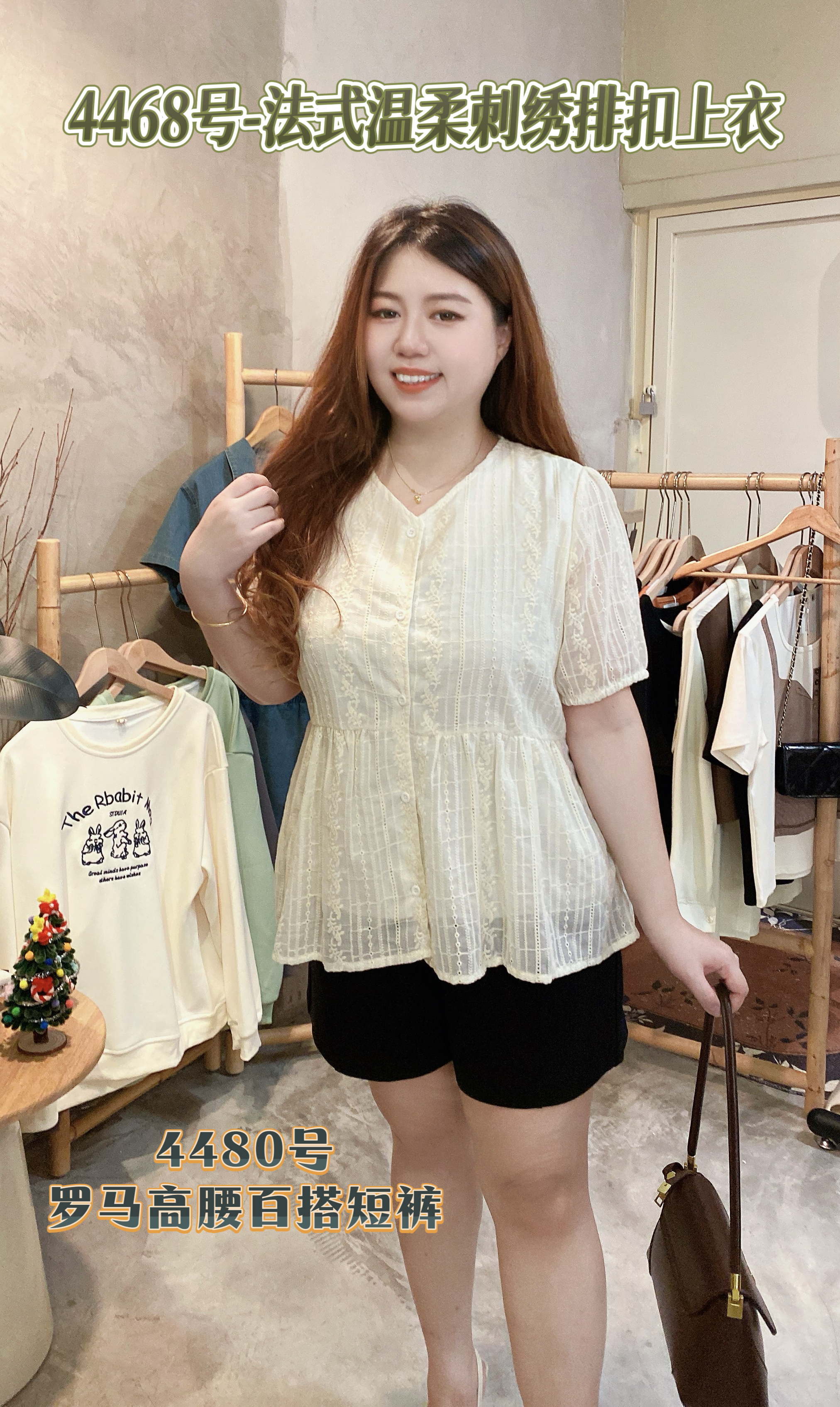 ❤️🔥4468号-法式温柔刺绣排扣上衣