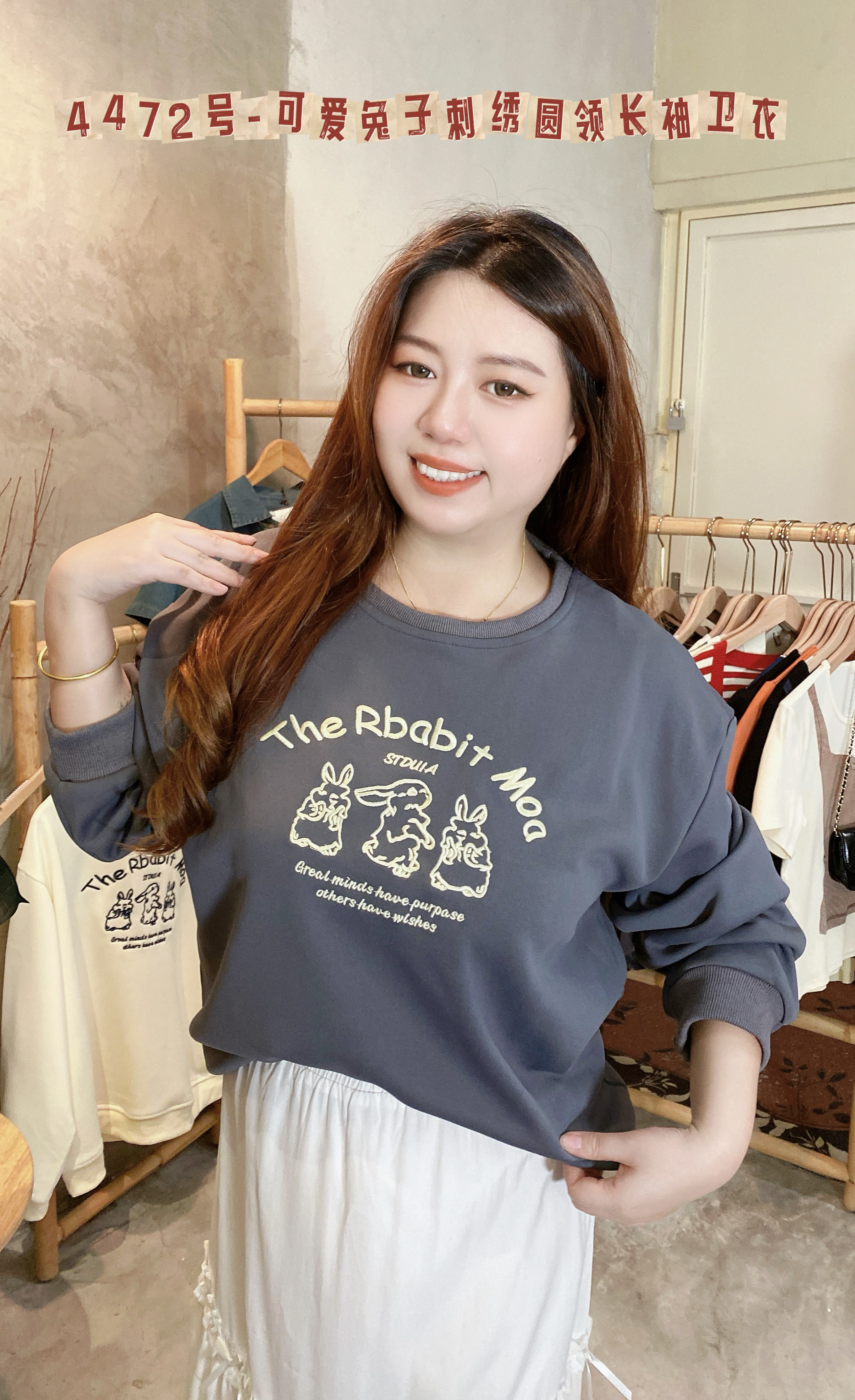 ❤️🔥4472号-可爱兔子刺绣圆领长袖卫衣