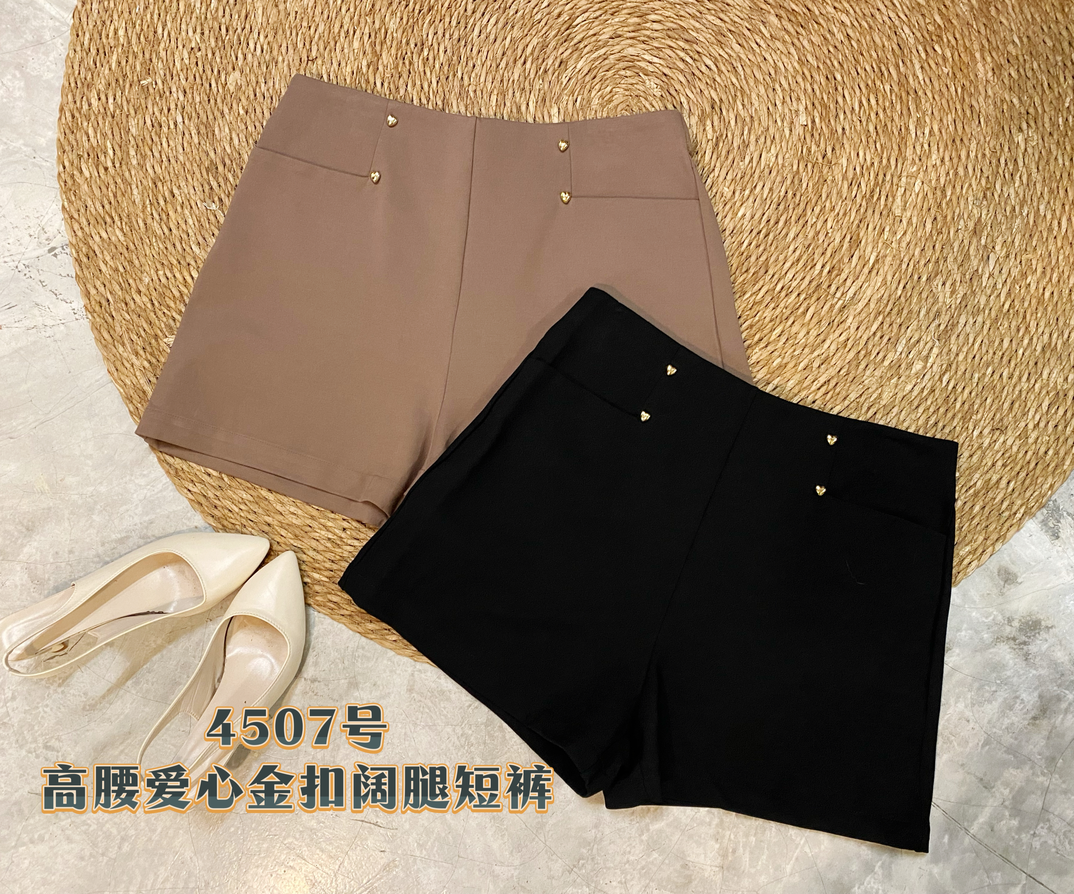 ❤️🔥4507号-高腰爱心金扣阔腿短裤
