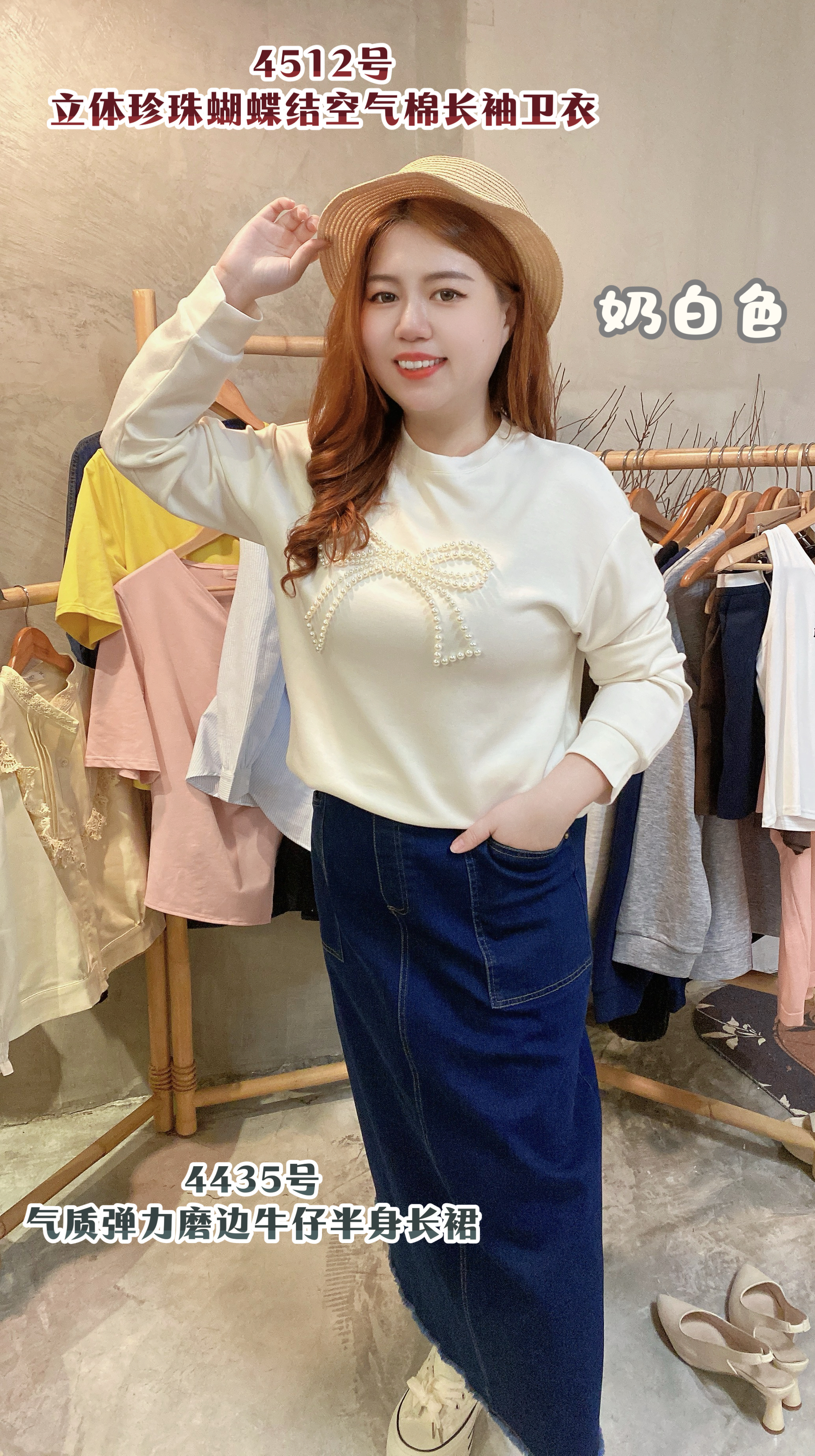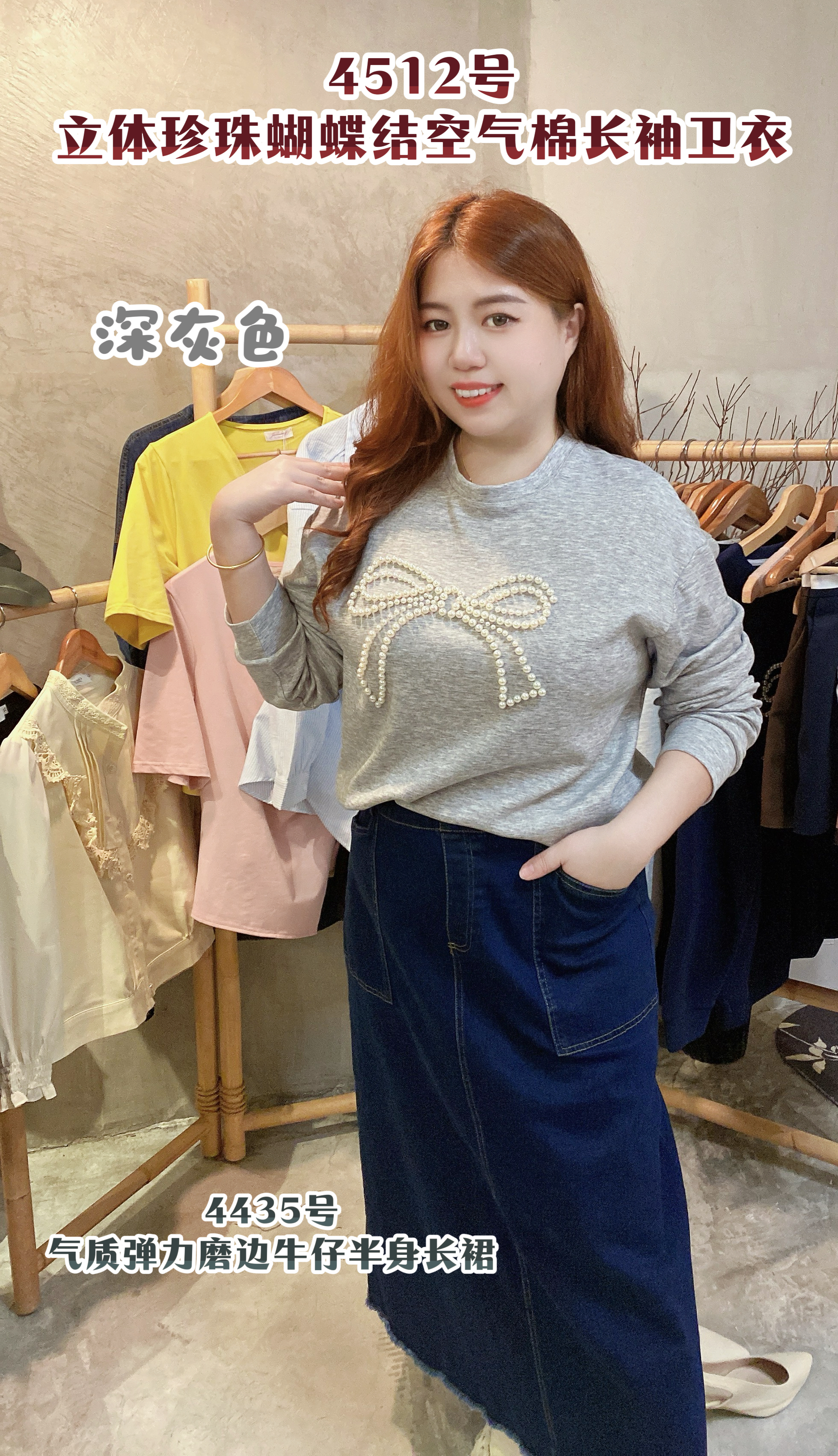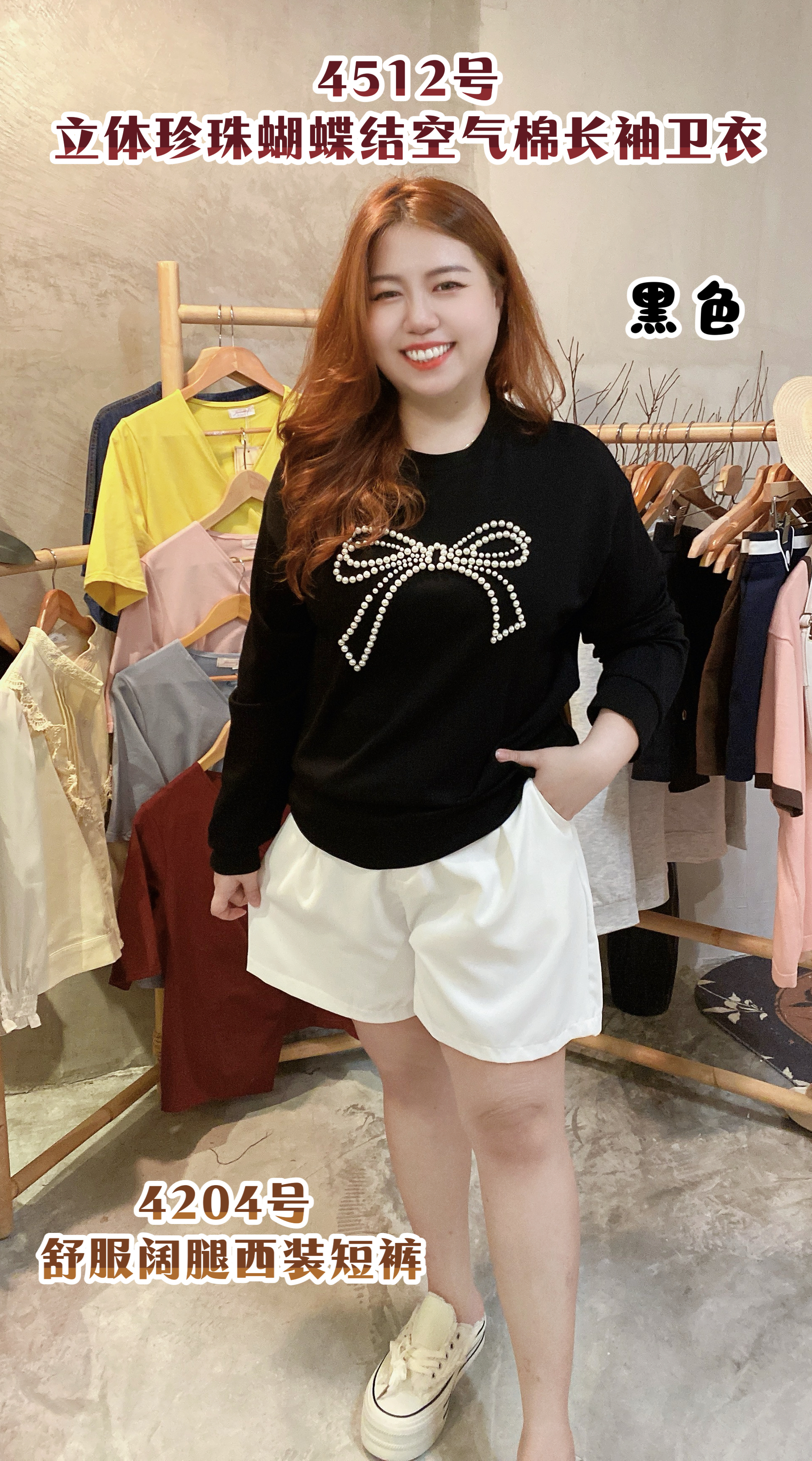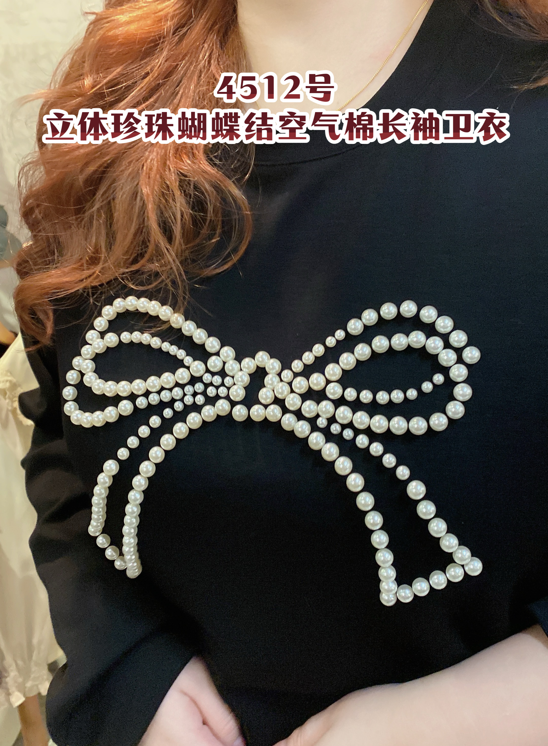 ❤️🔥4512号-立体珍珠蝴蝶结空气棉长袖卫衣