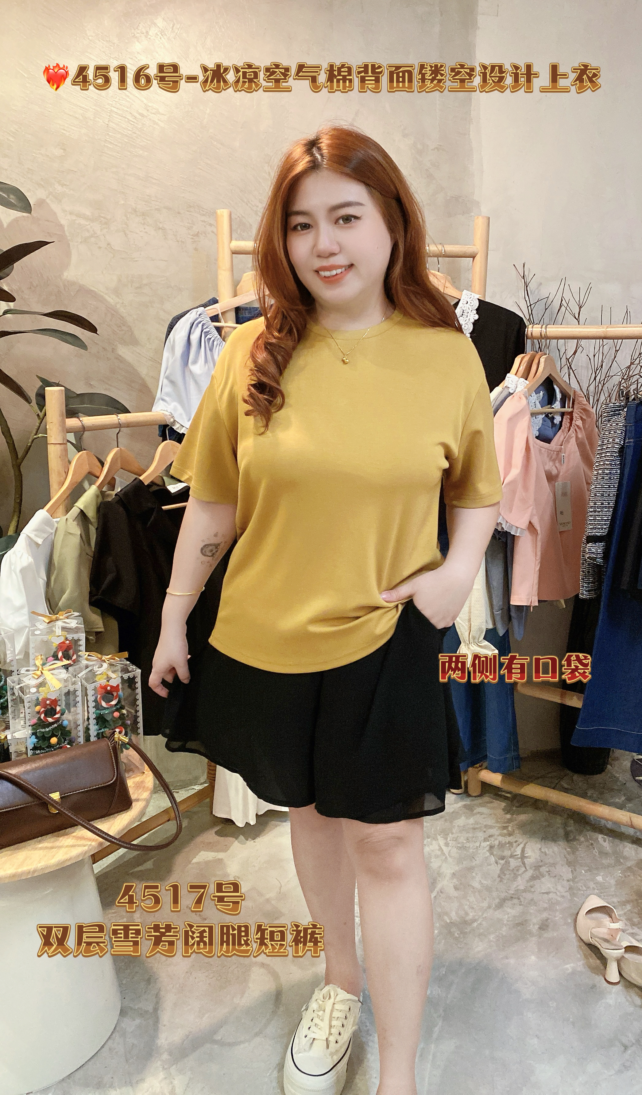 姜黄色YW,黑色BK,绿色GN,蓝色BL 胸围平铺116-126cm 衣长64cm 💰RM49