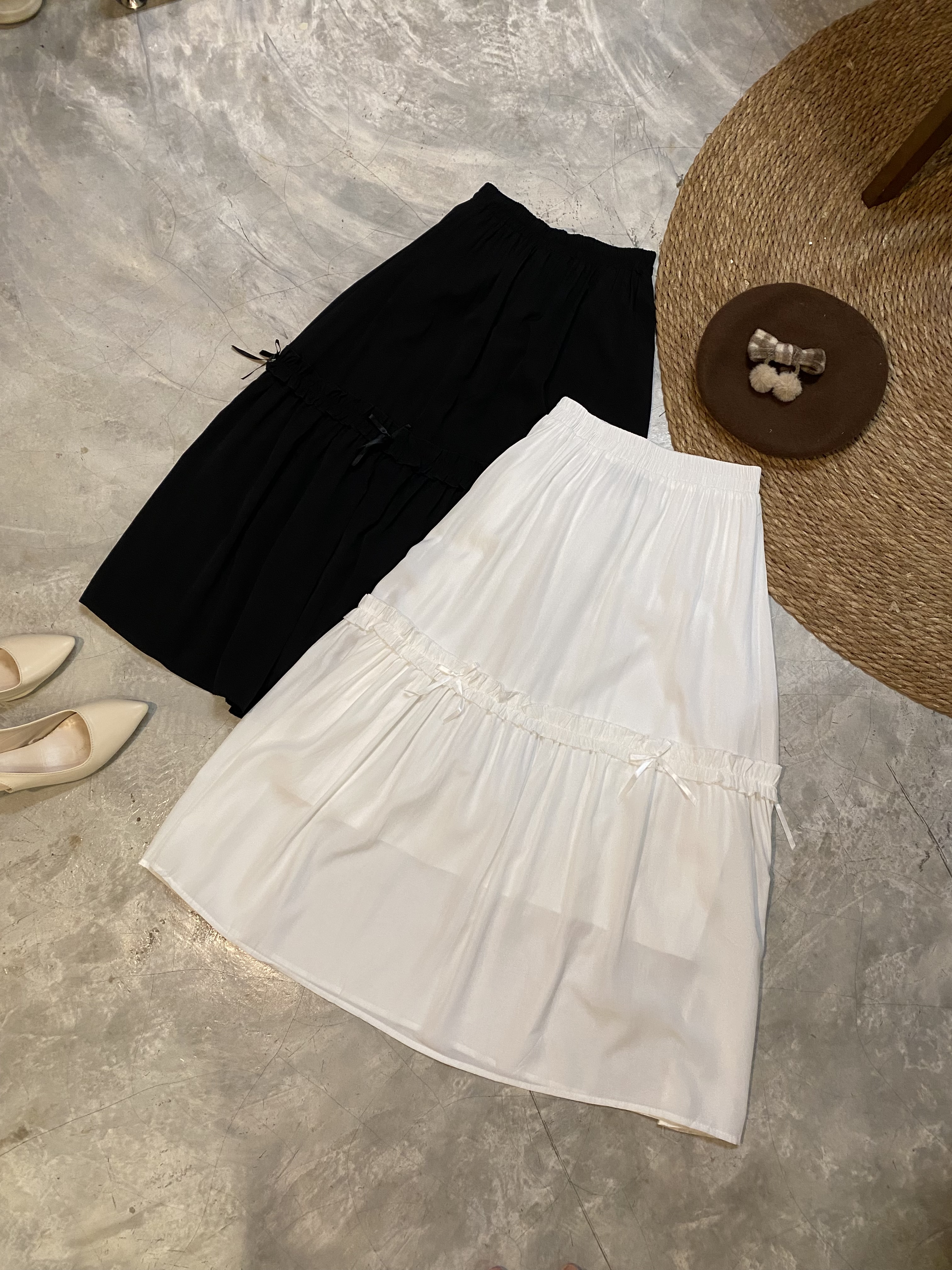 🌸4442号-甜美日系蝴蝶结飘逸半身长裙