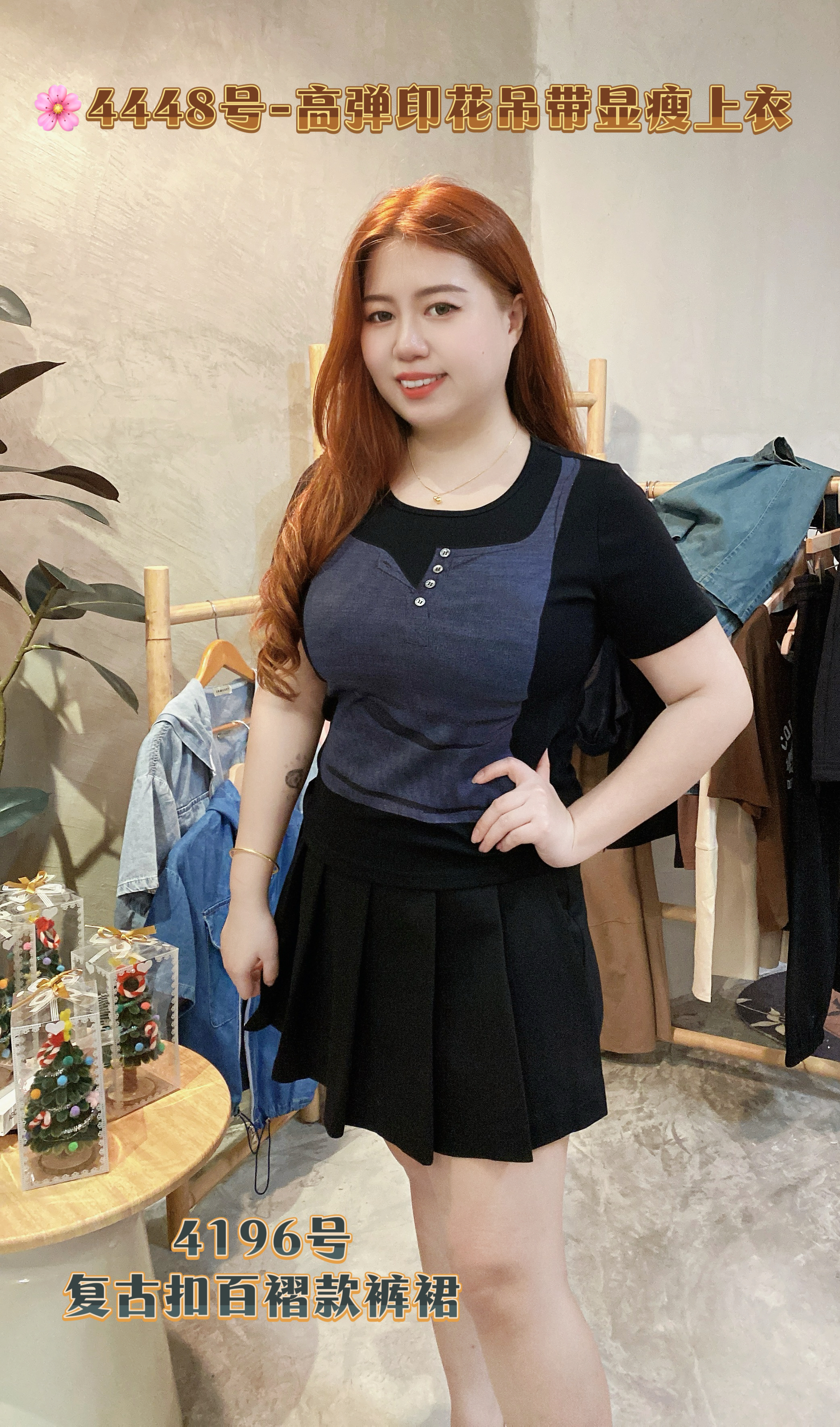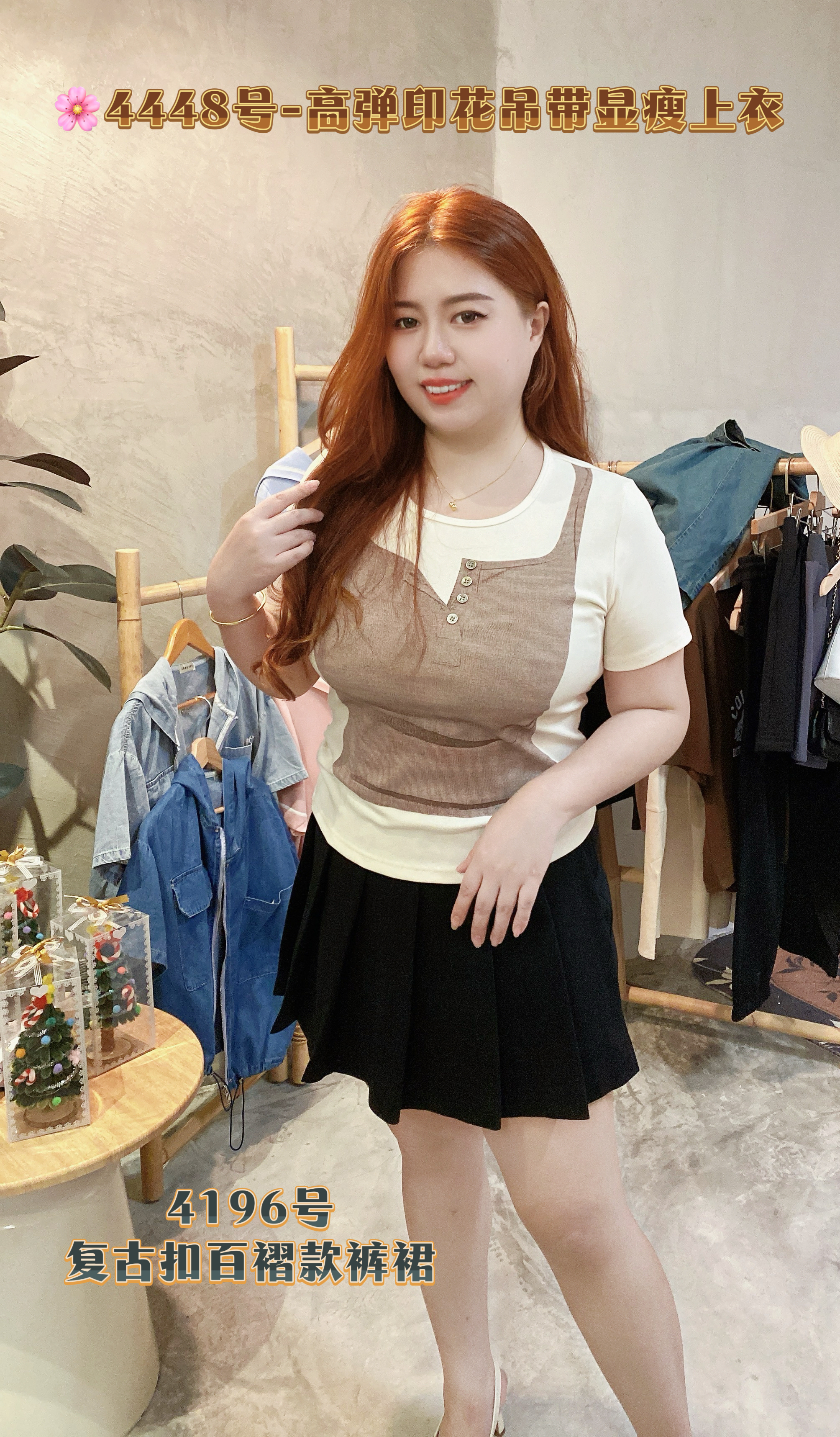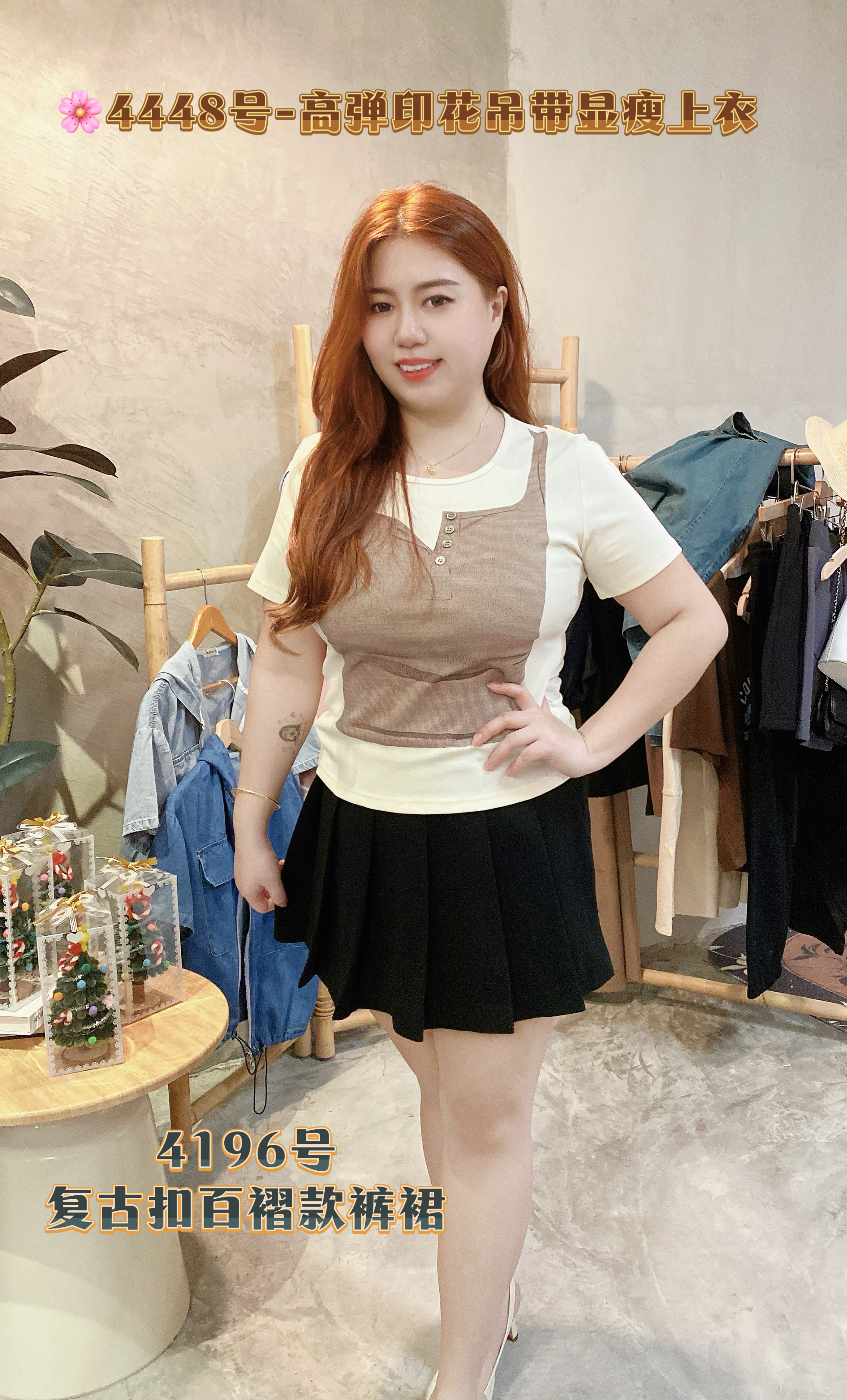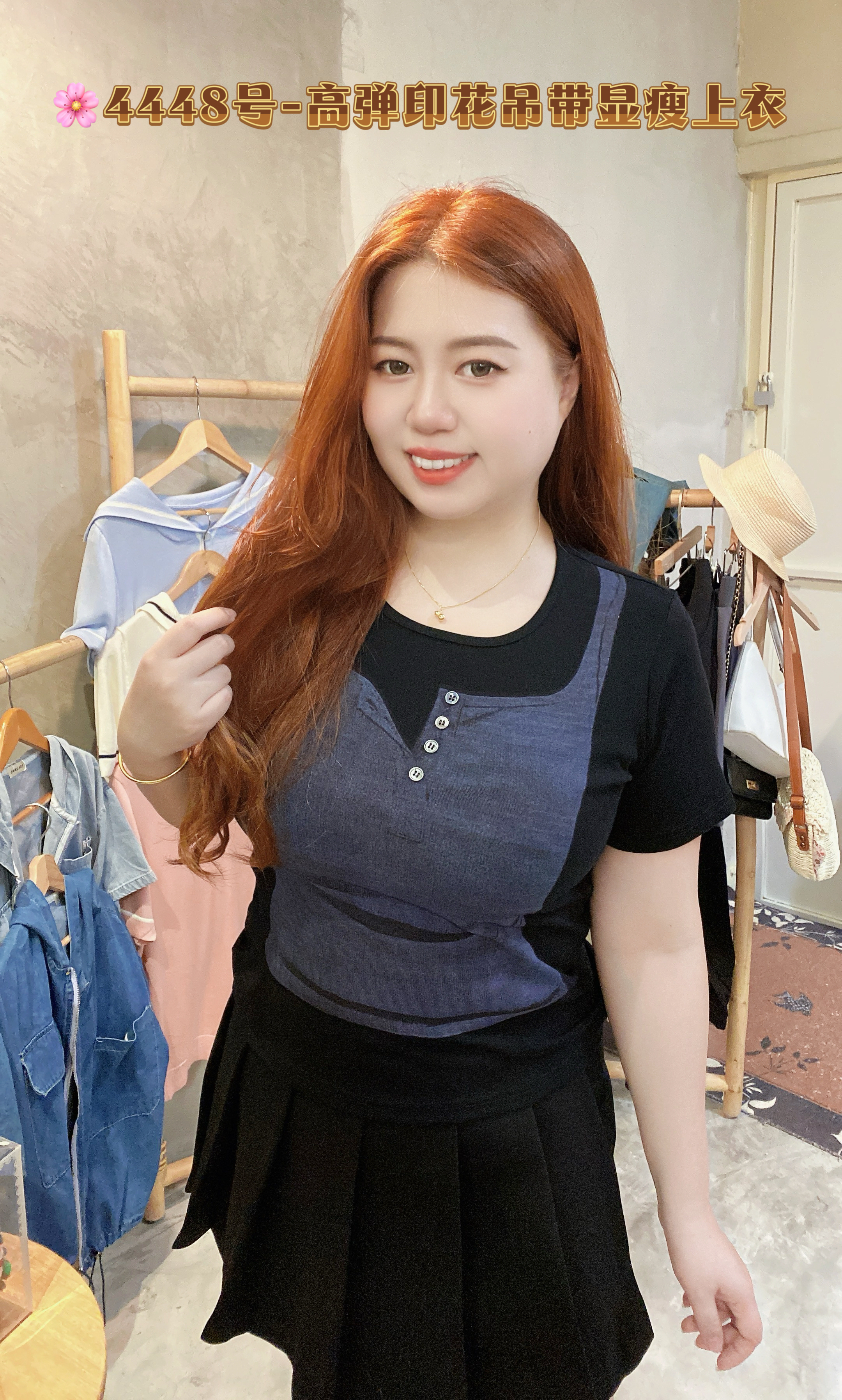 🌸4448号-高弹印花吊带显瘦上衣