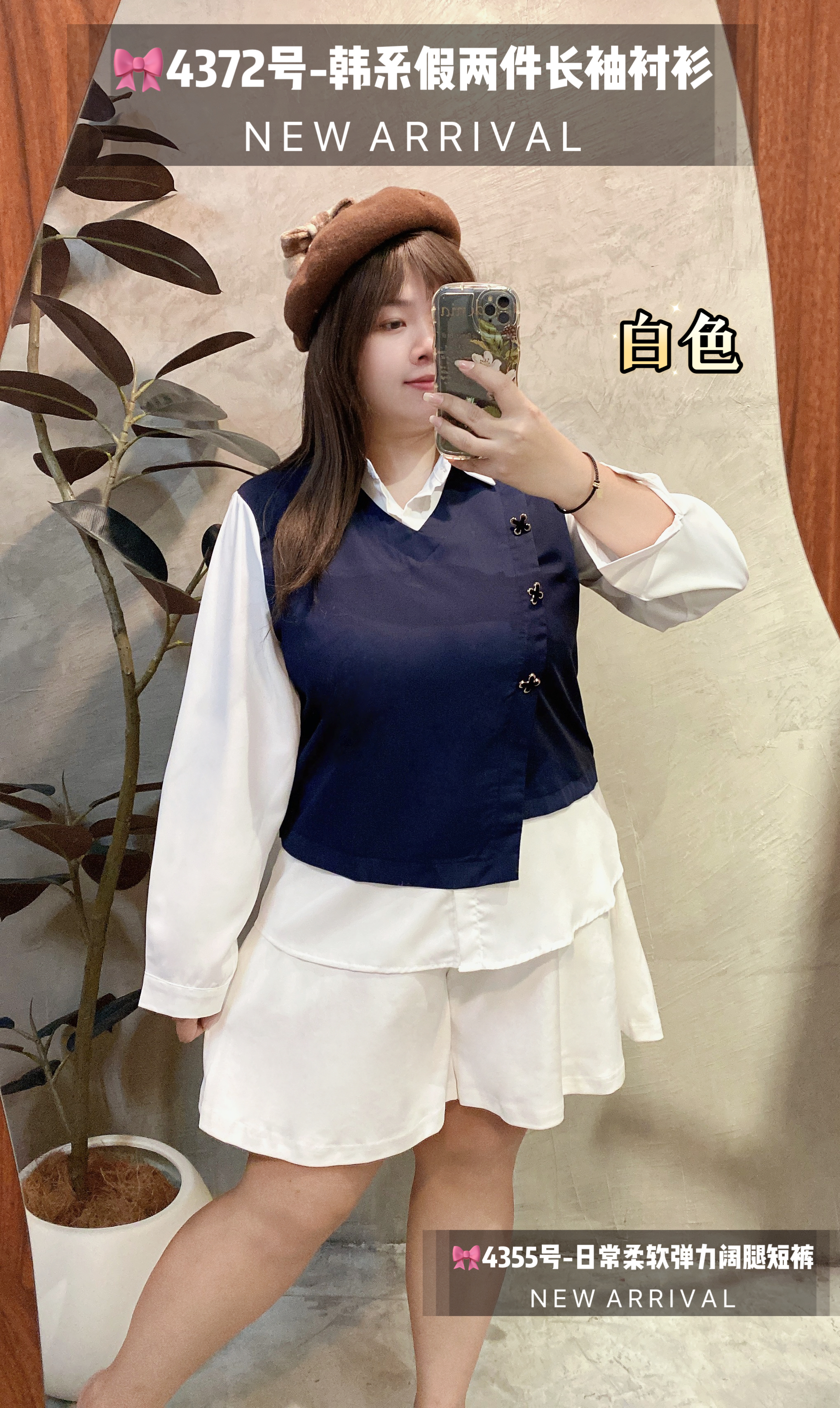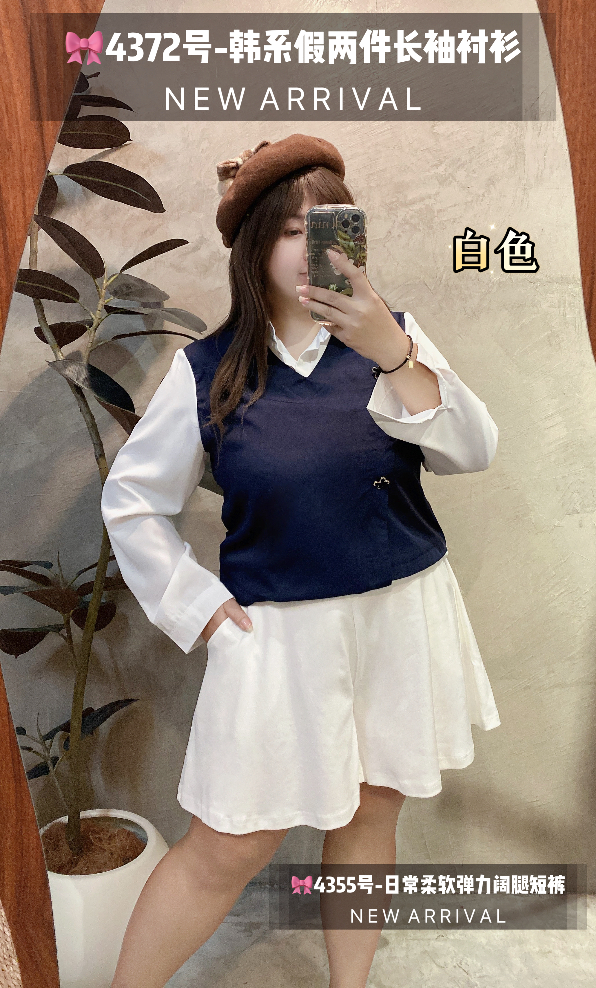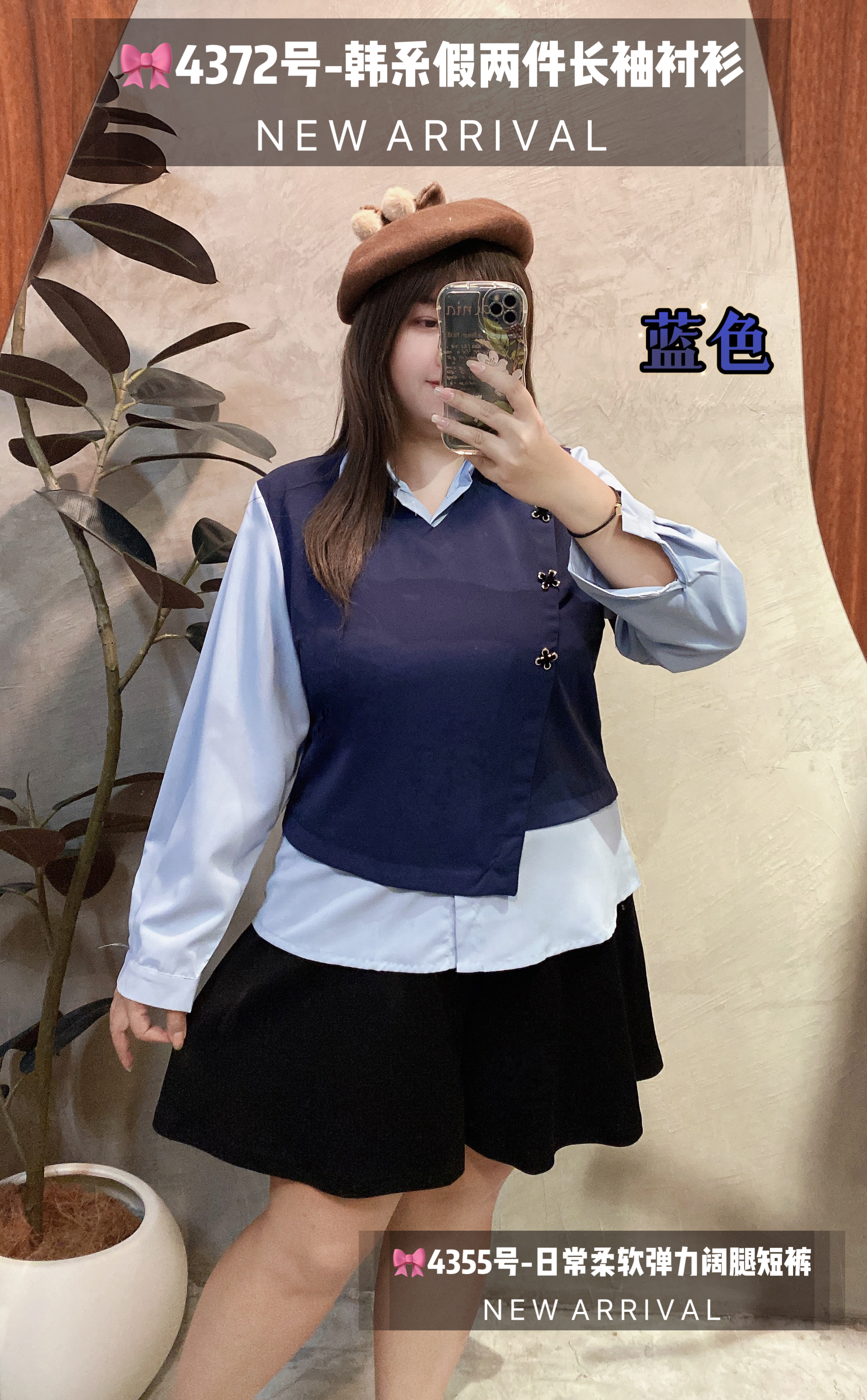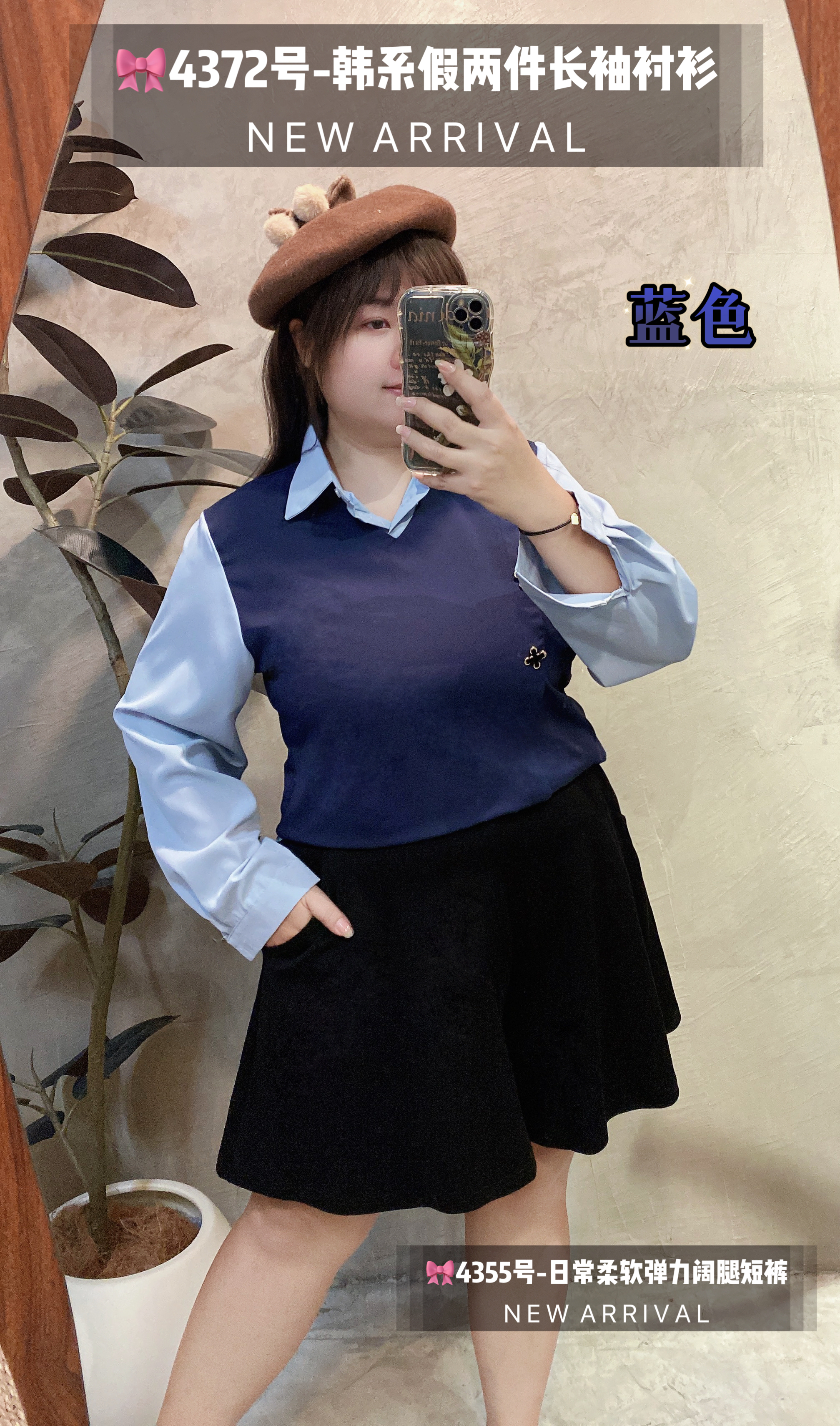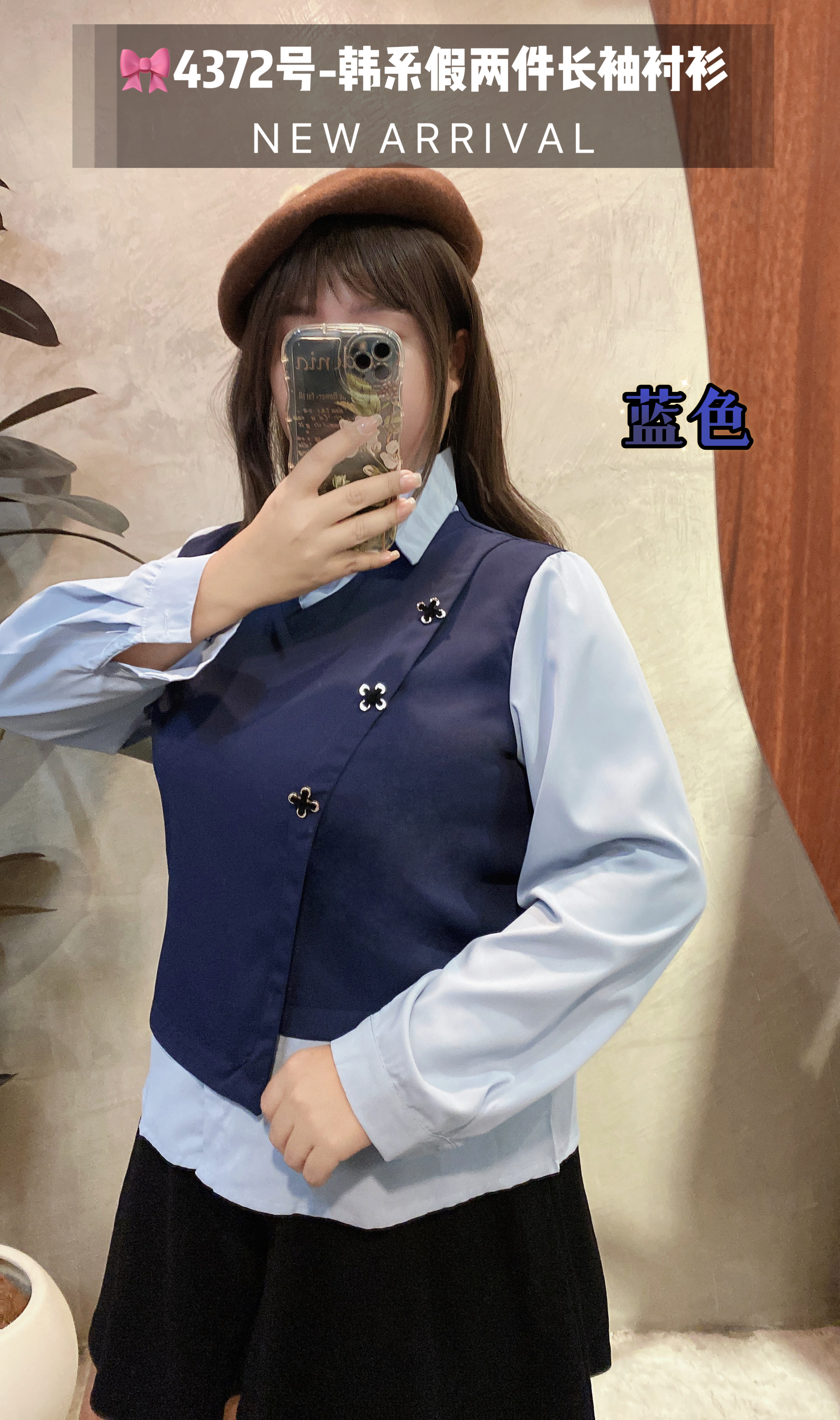 🎀4372号-韩系假两件长袖衬衫