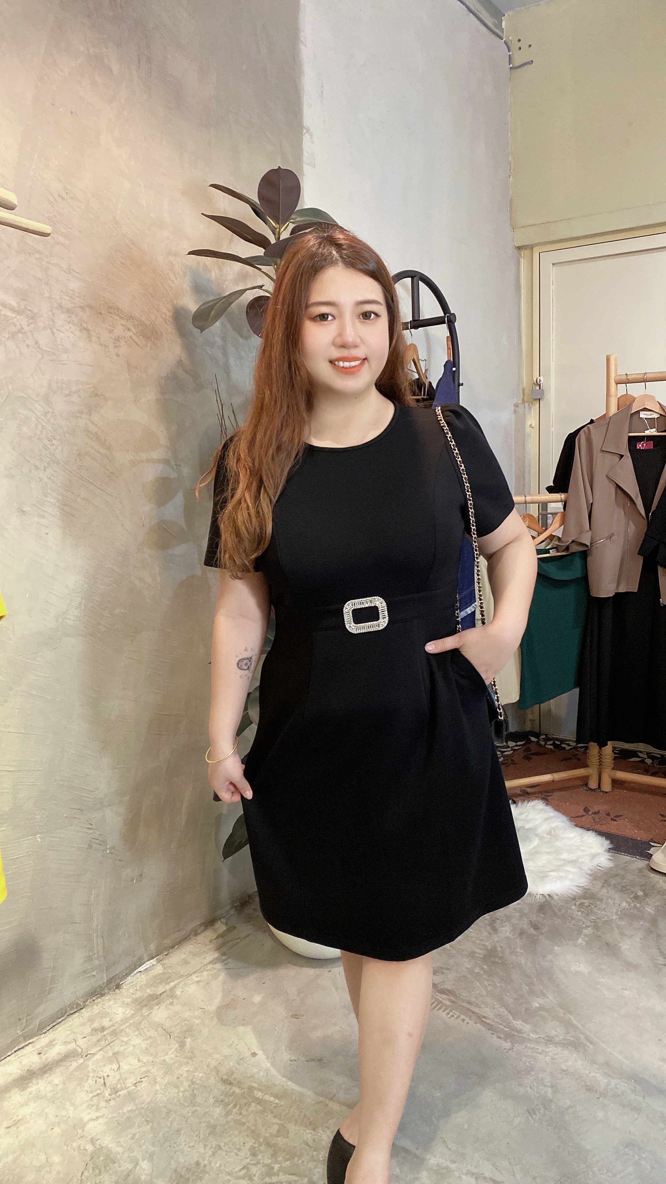 🎀4385号-钻石腰扣气质修身空气棉连身裙