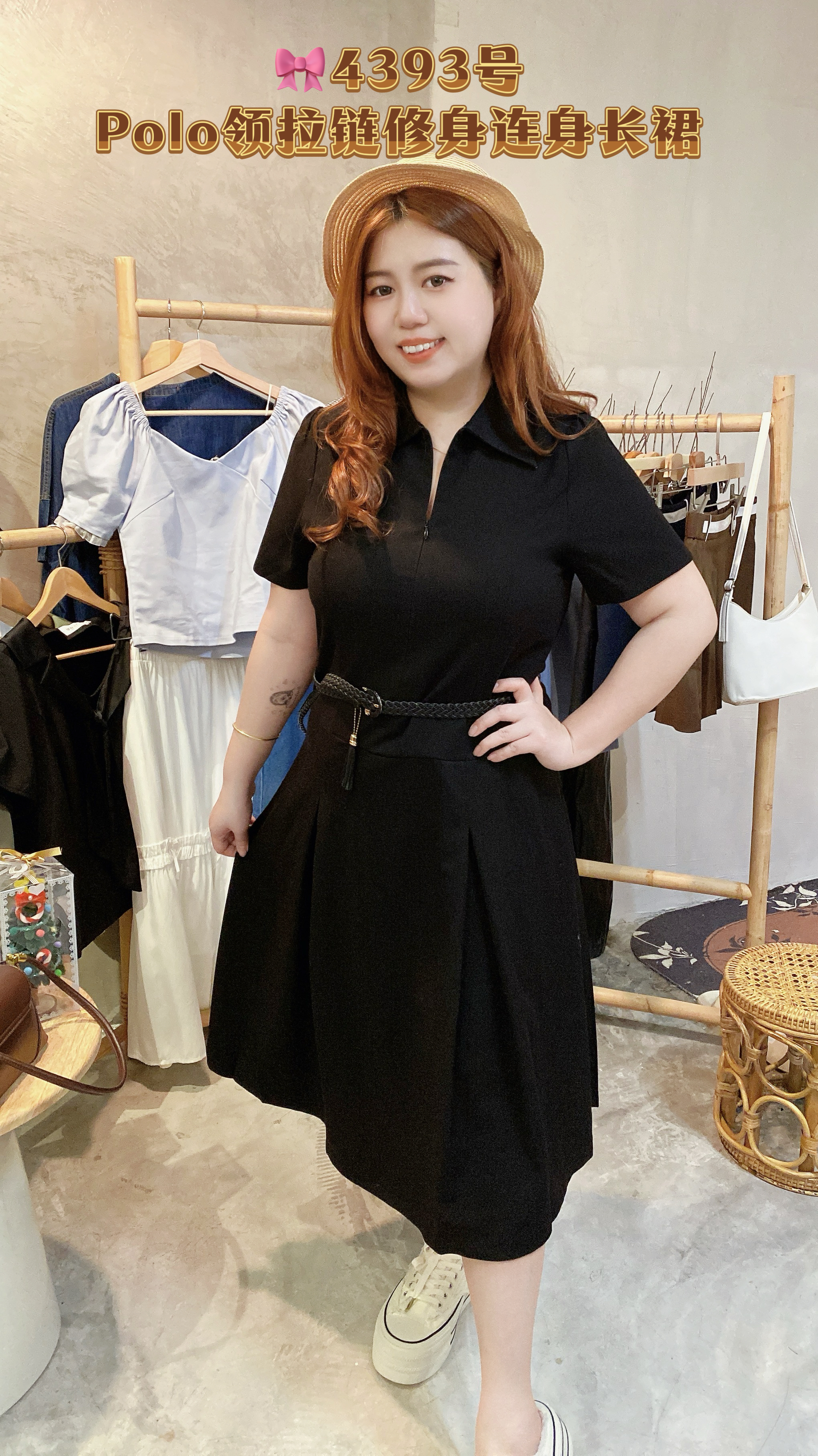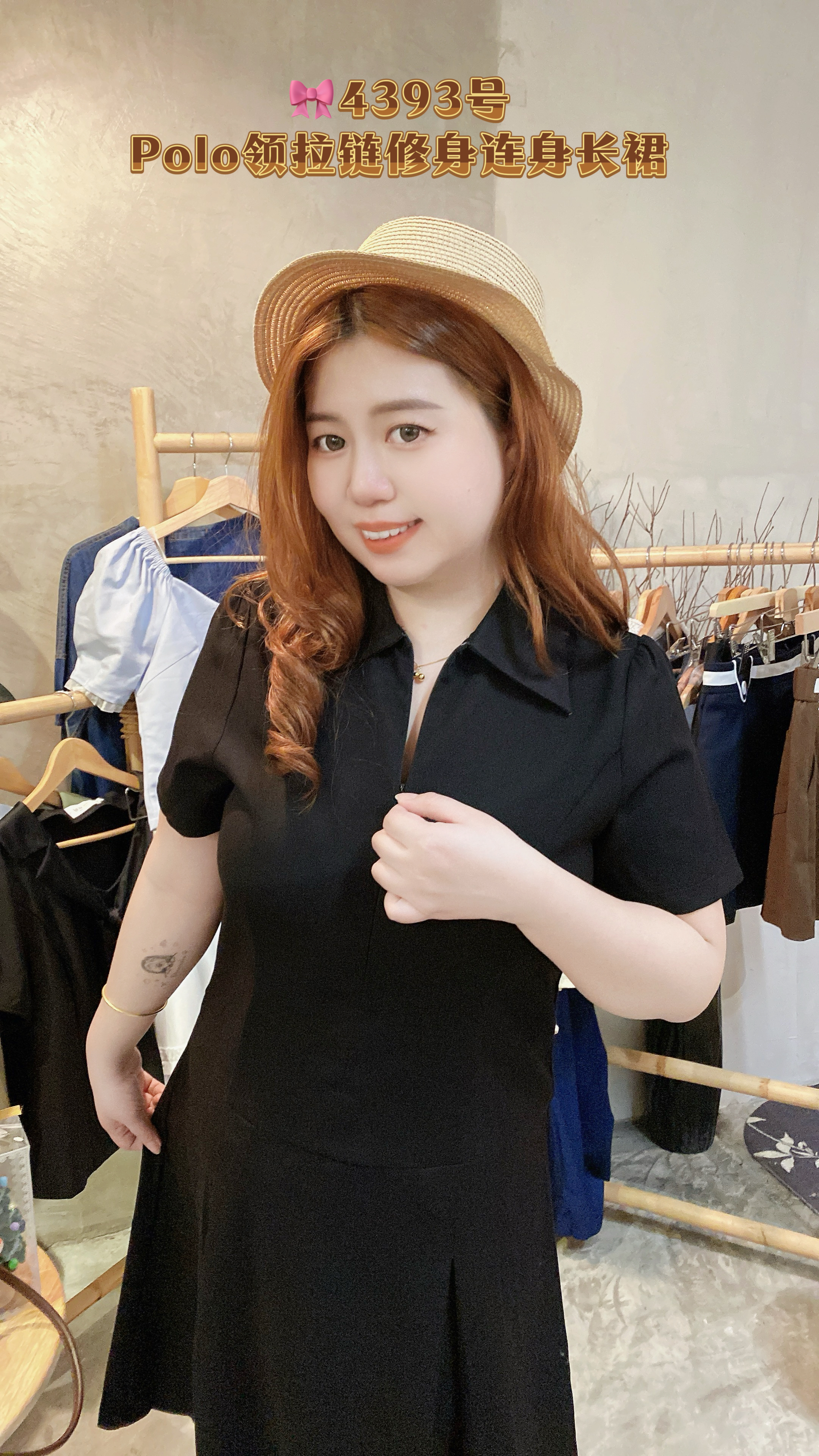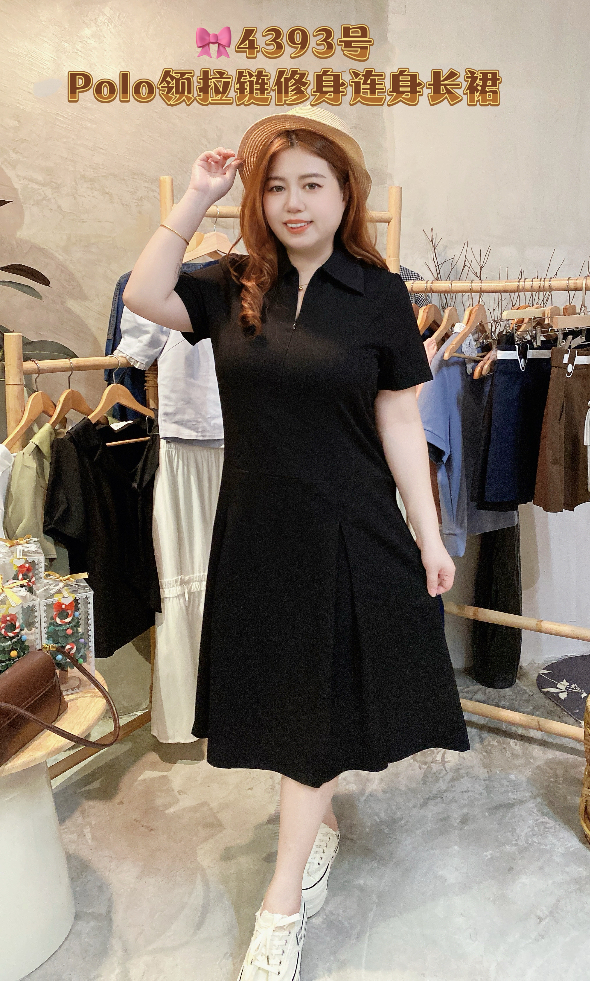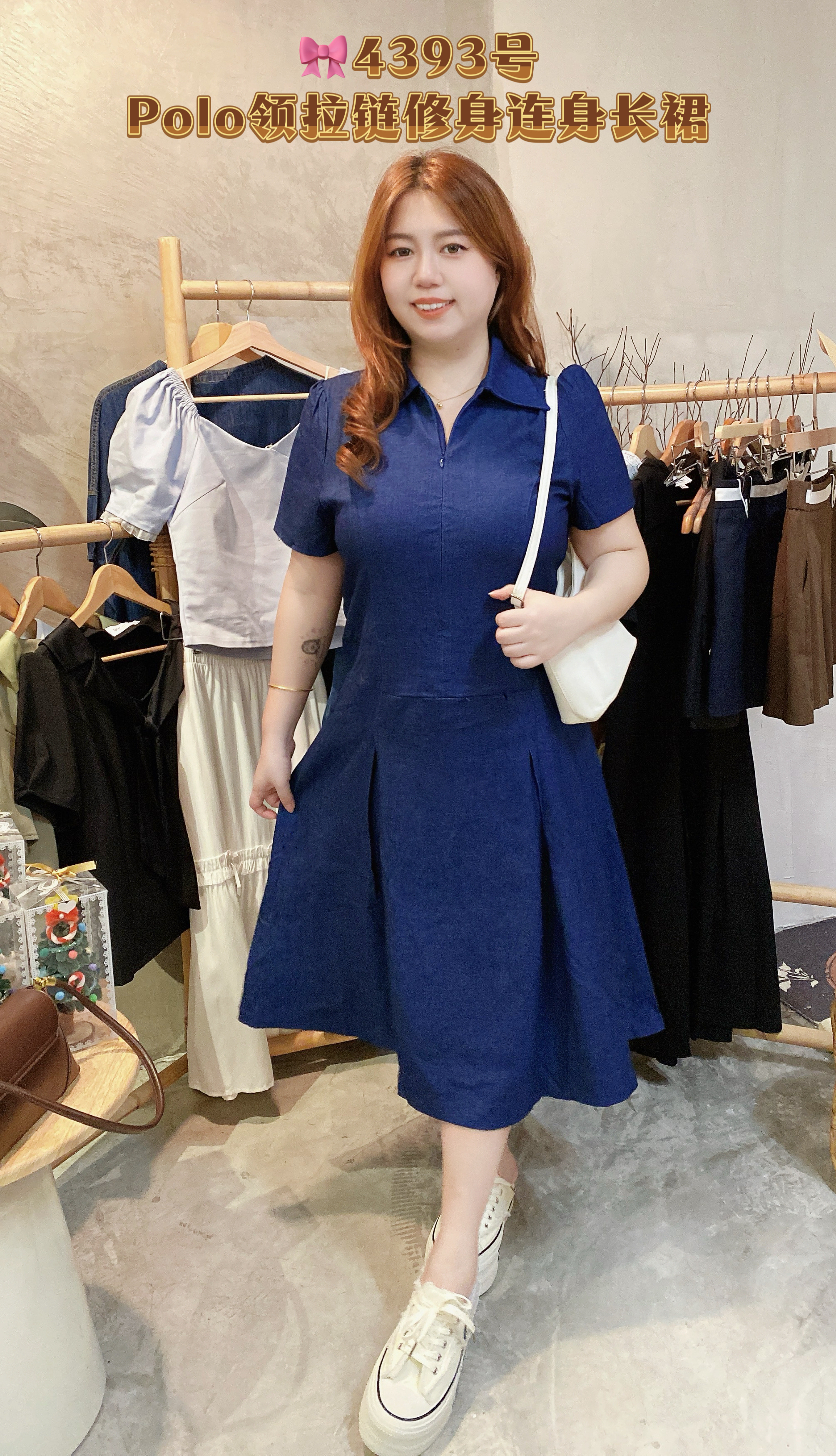 🎀4393号-Polo领拉链修身连身长裙