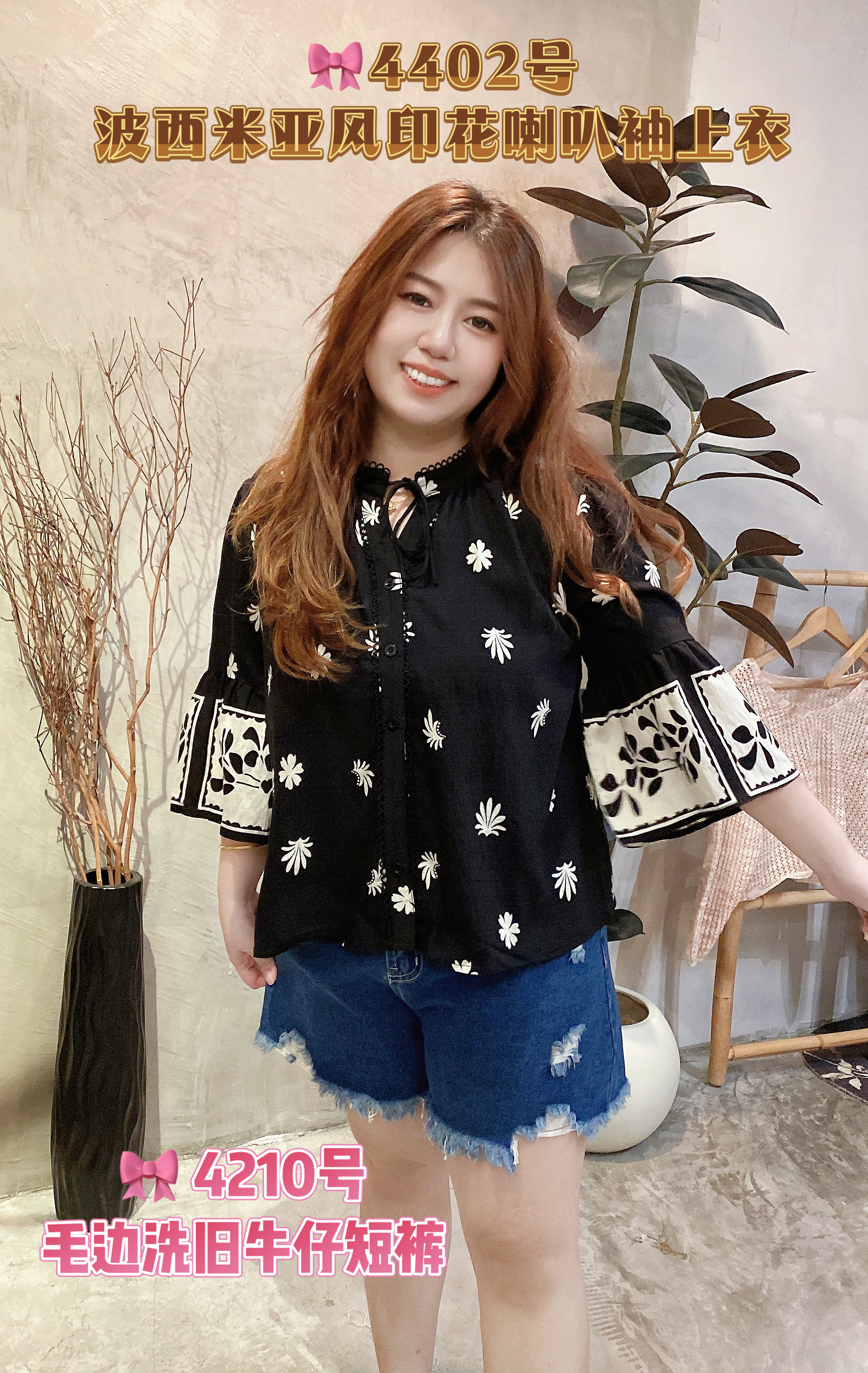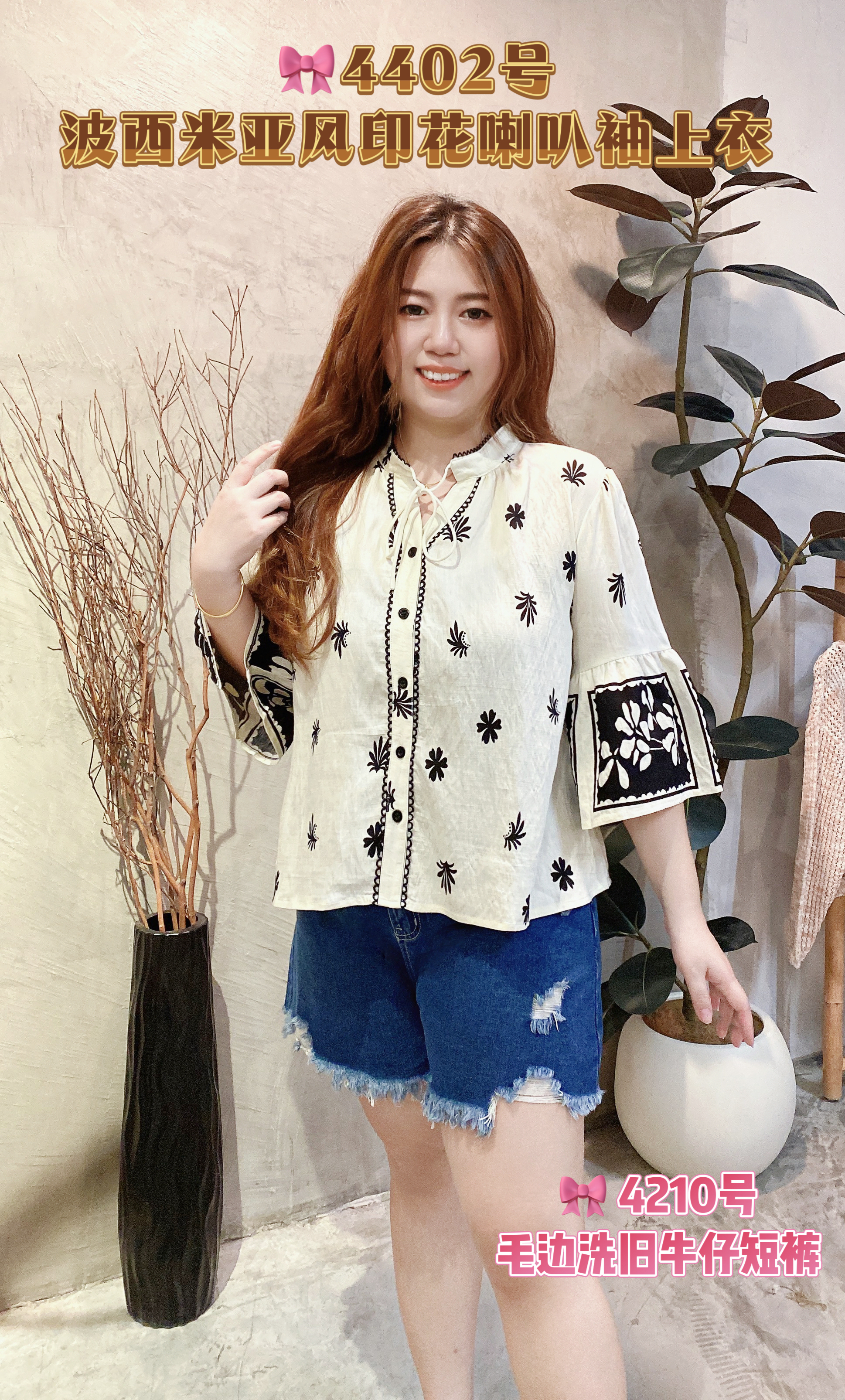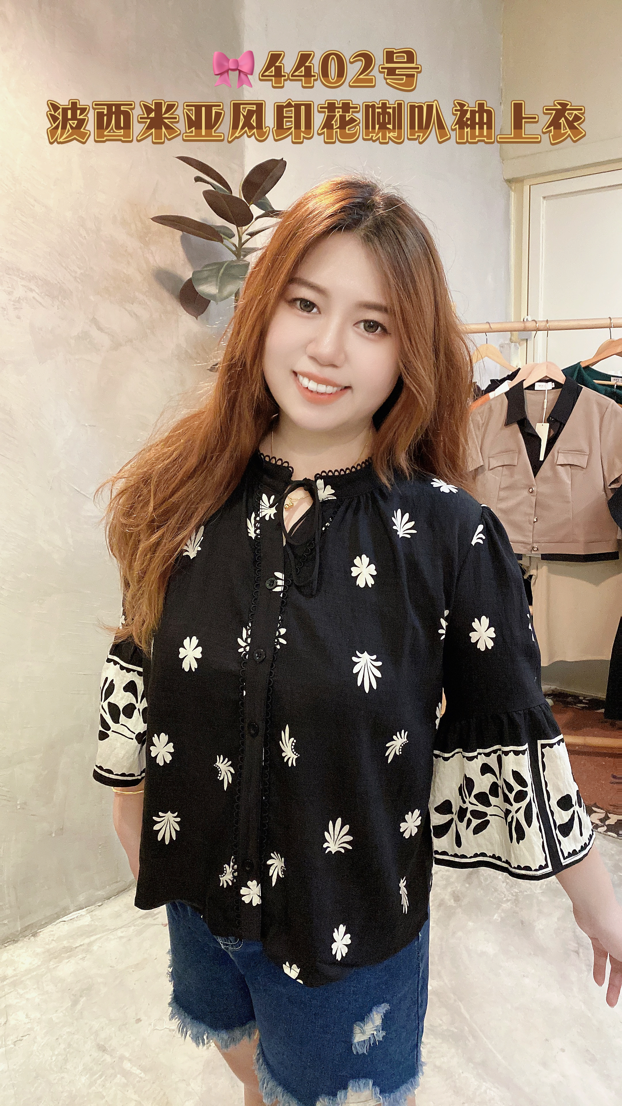 🎀4402号-波西米亚风印花喇叭袖上衣