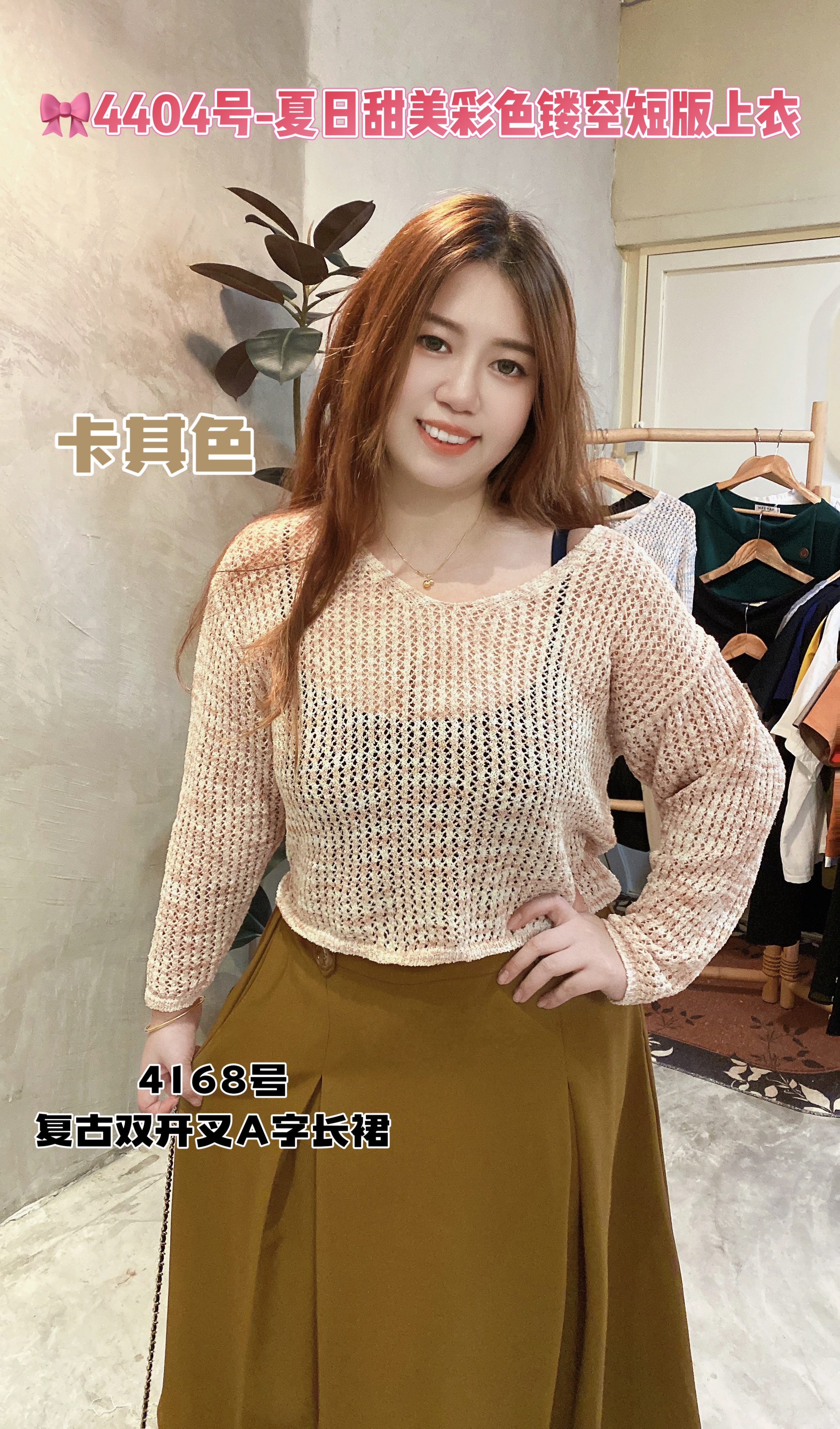 🎀4404号-夏日甜美彩色镂空短版上衣