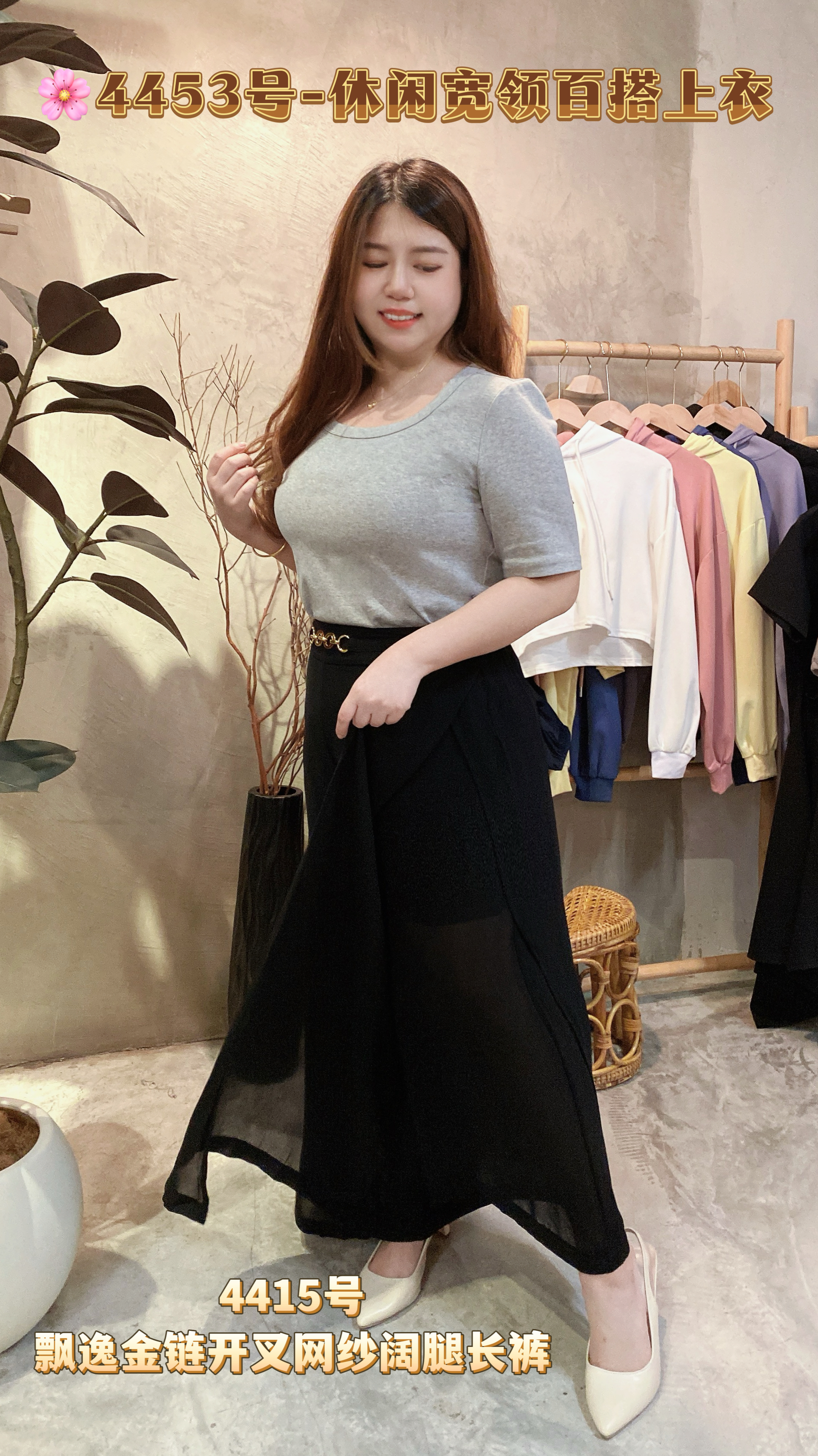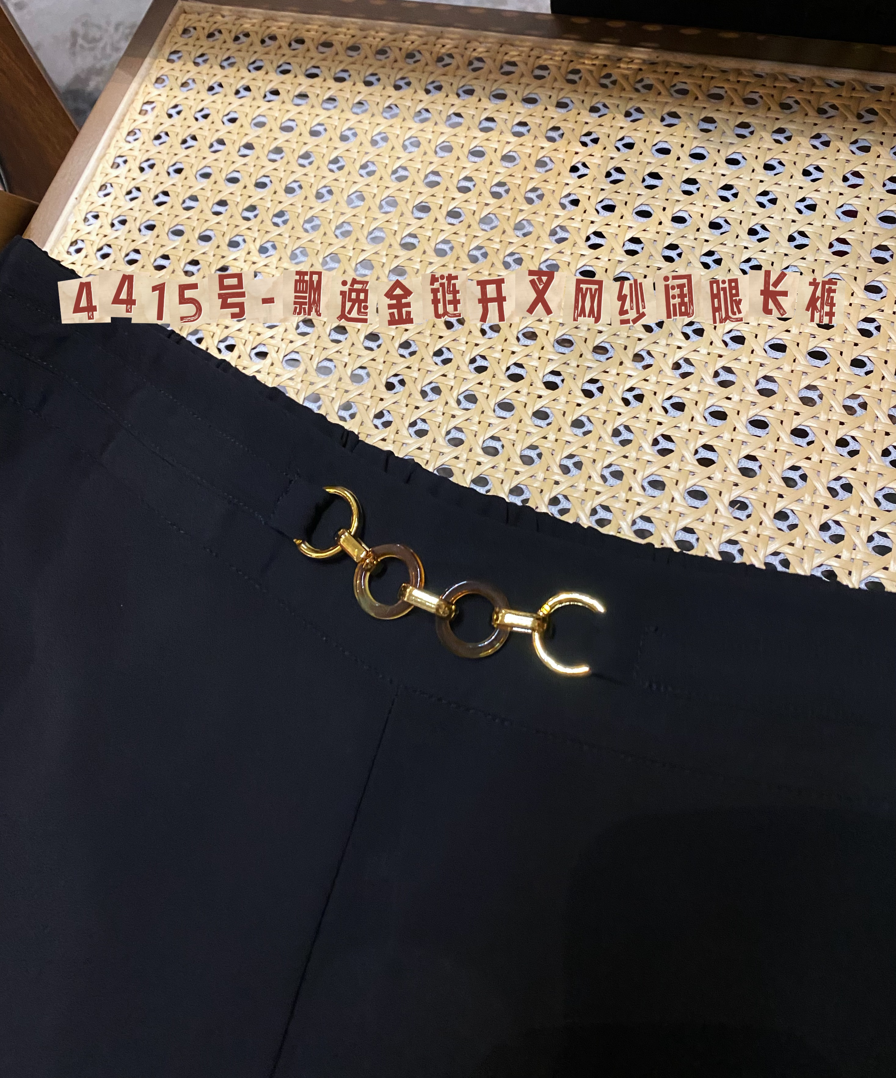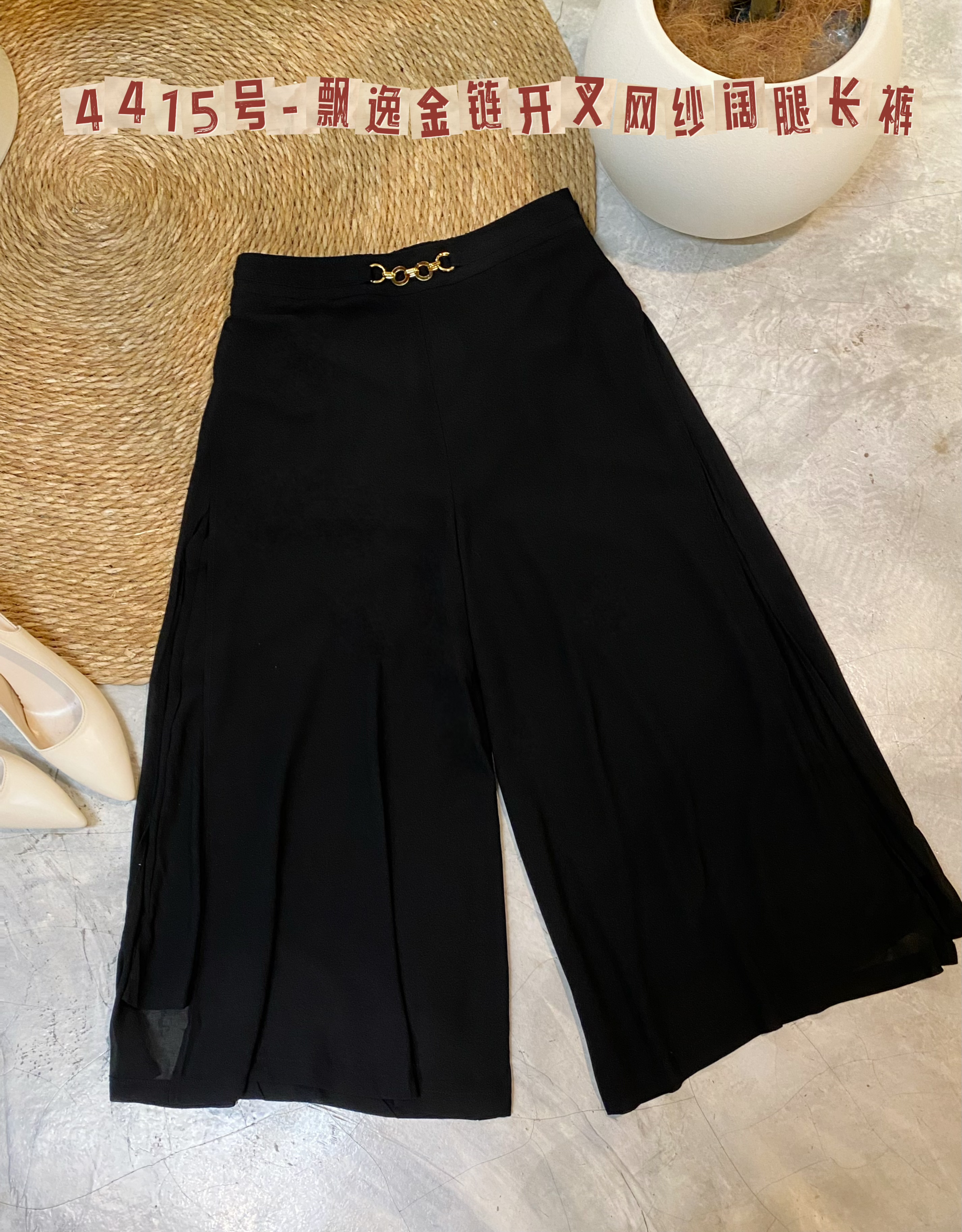 🎀4415号-飘逸金链开叉网纱阔腿长裤