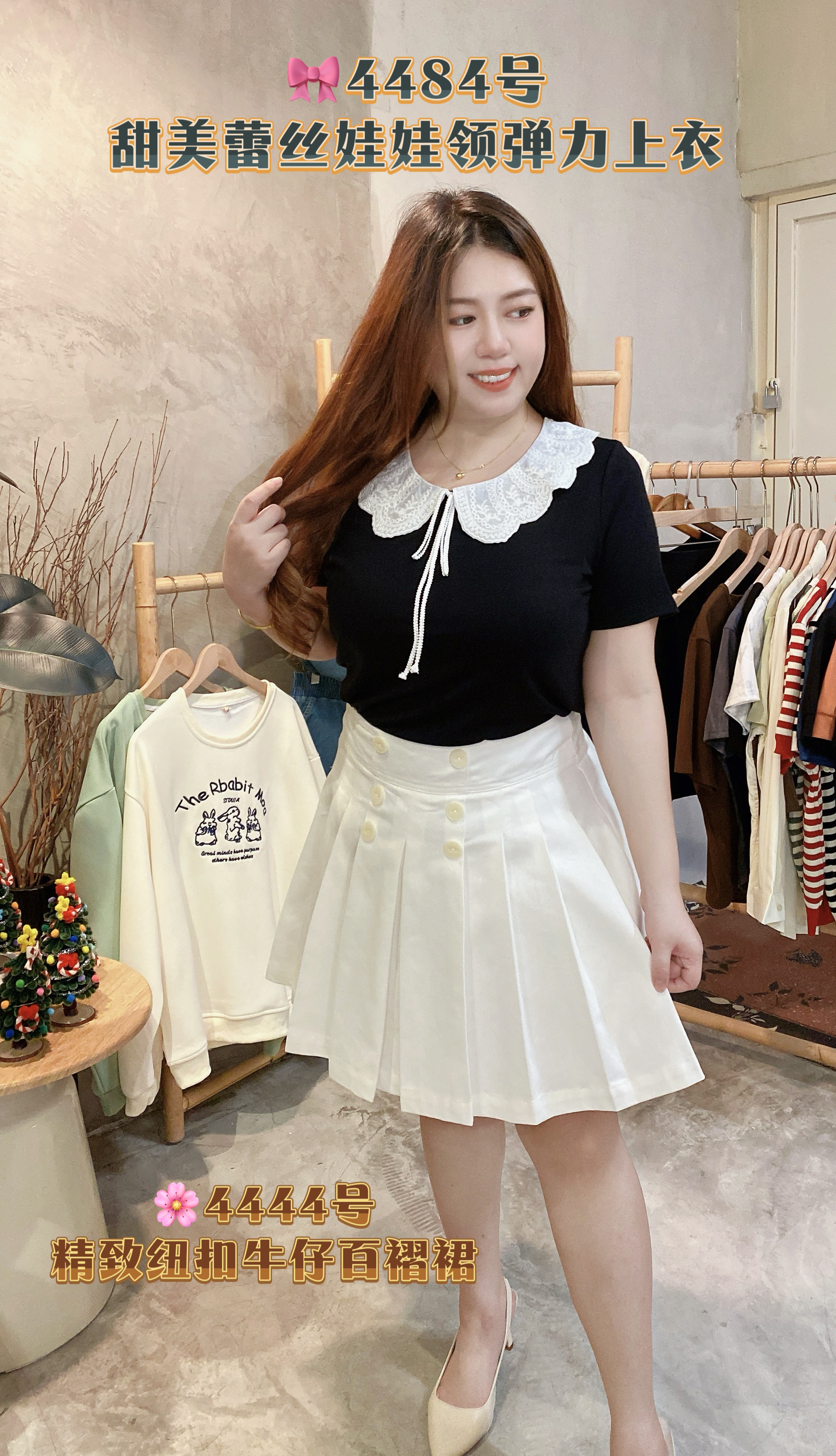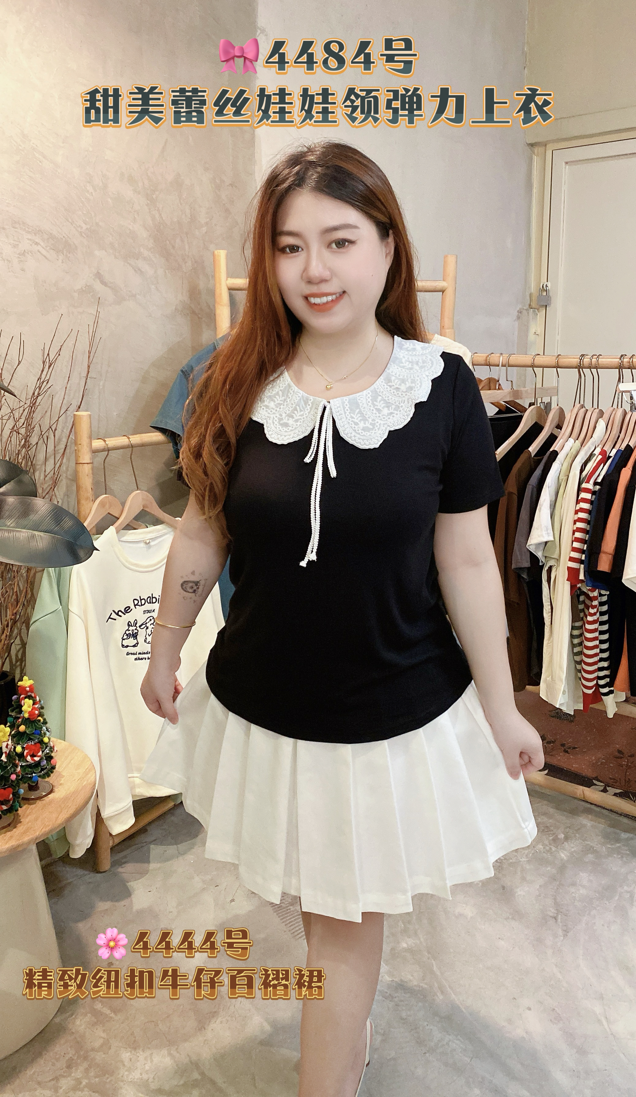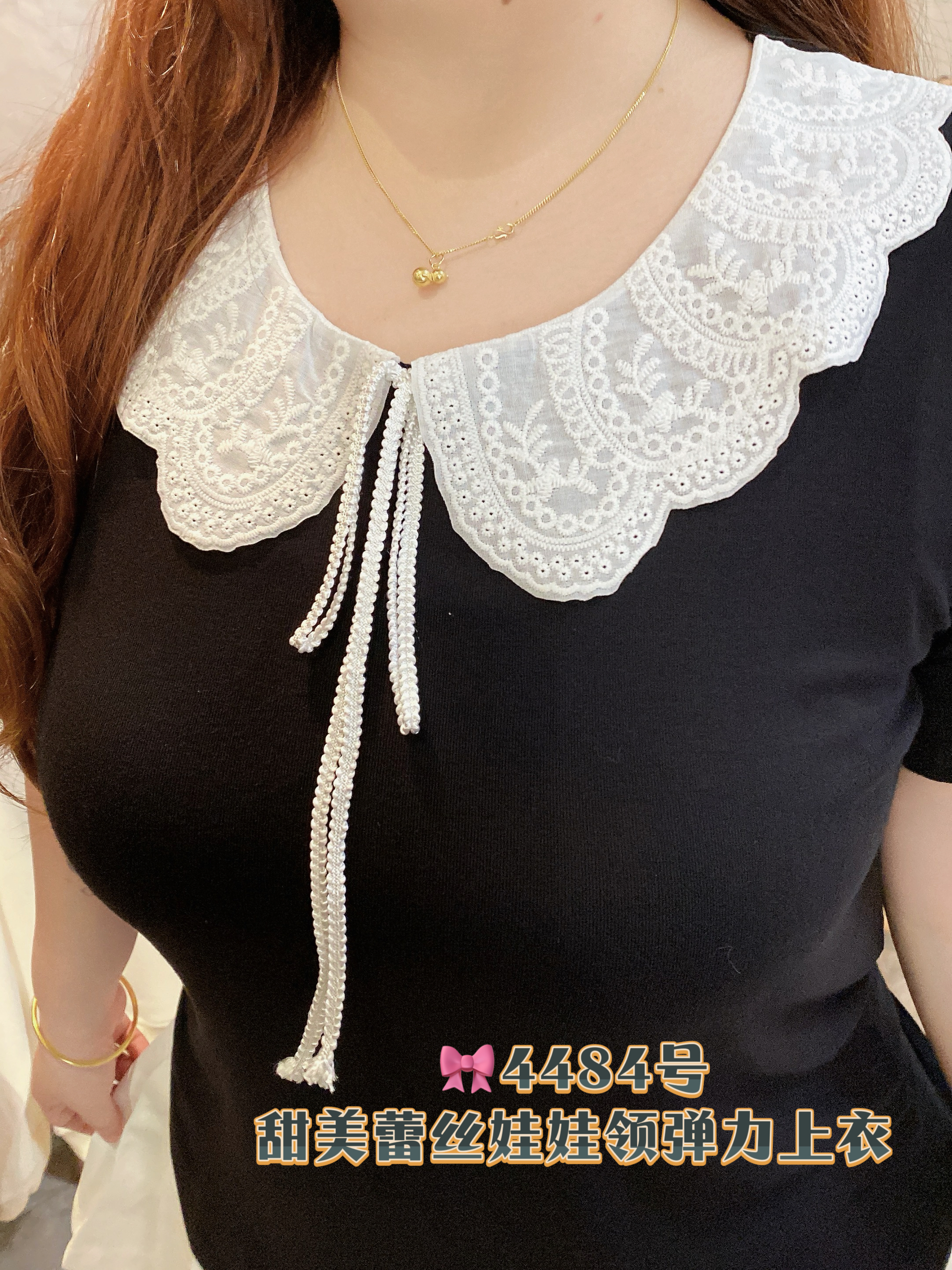 🎀4484号-甜美蕾丝娃娃领弹力上衣