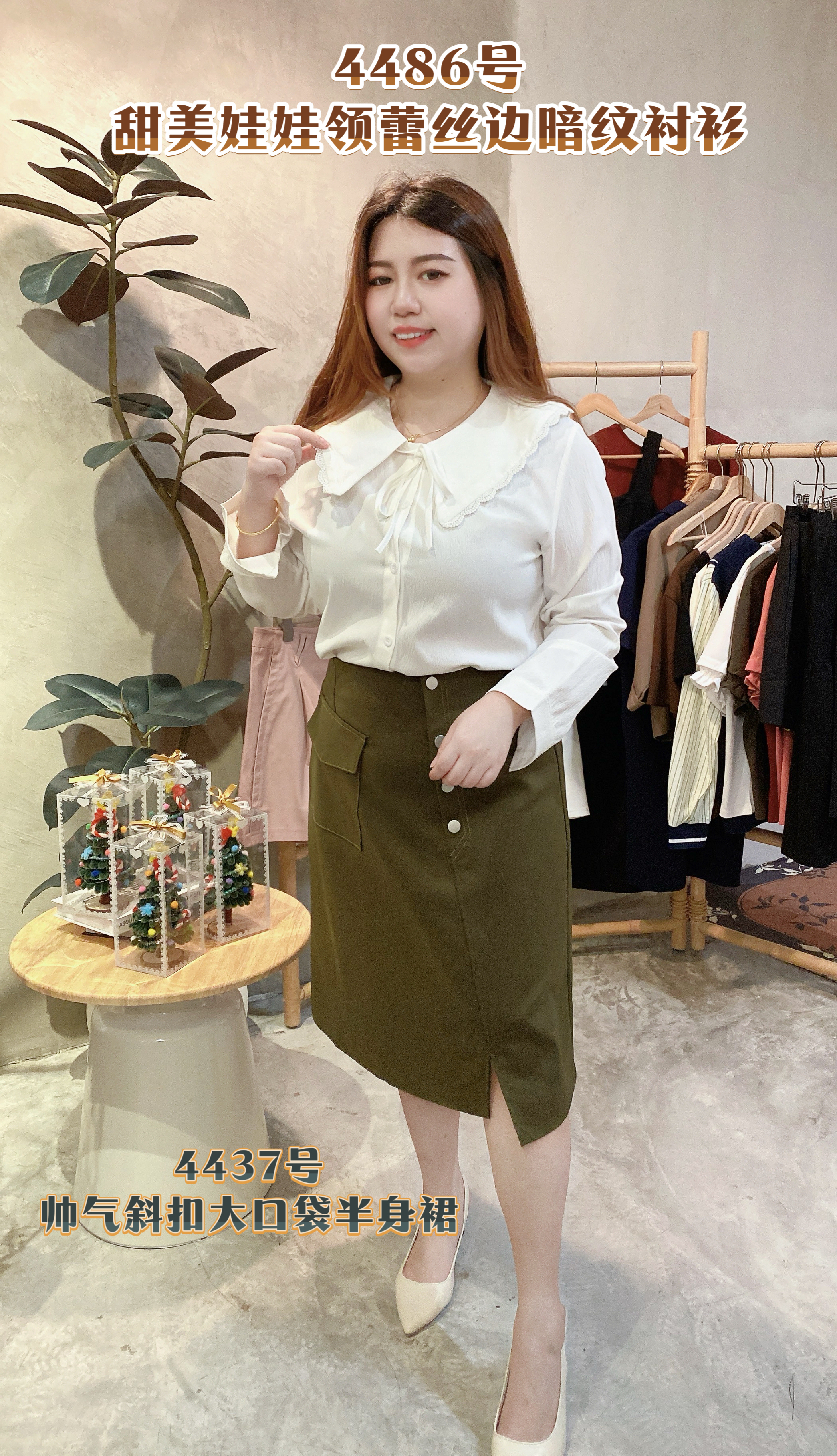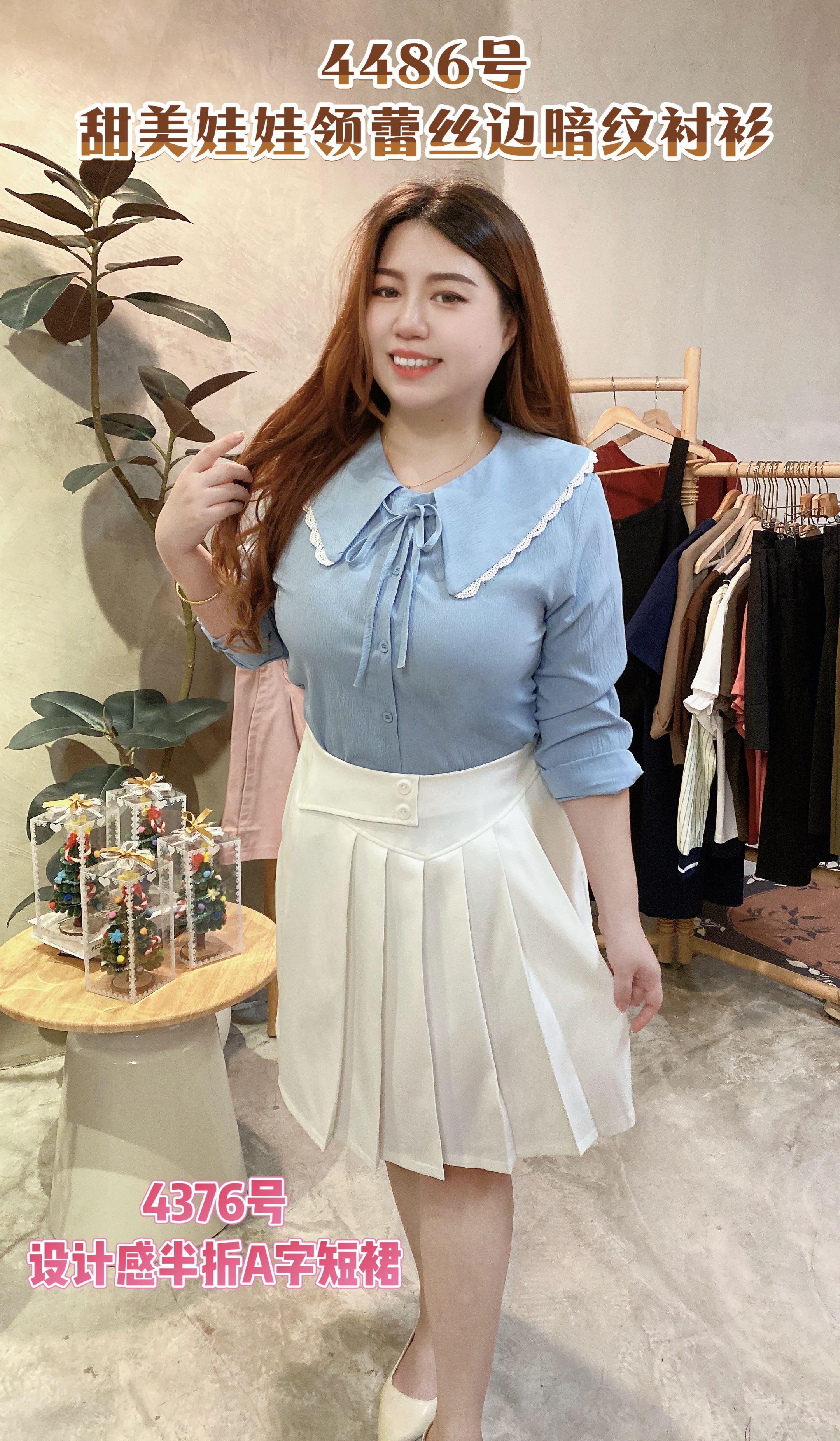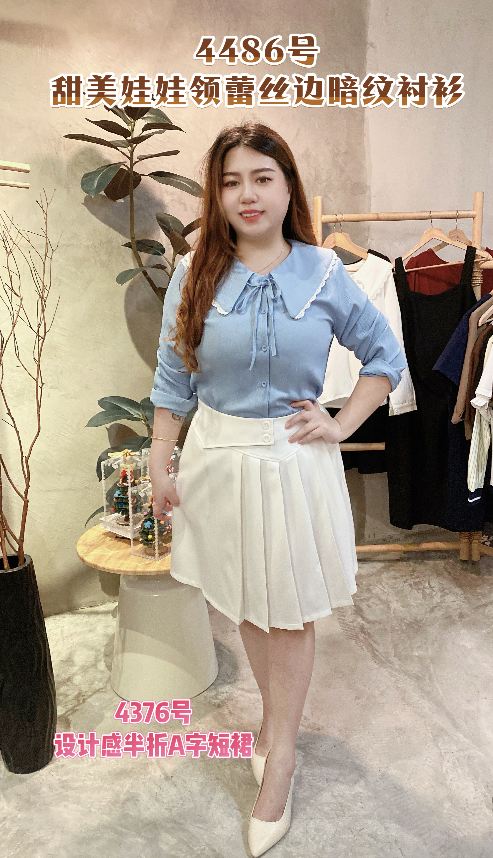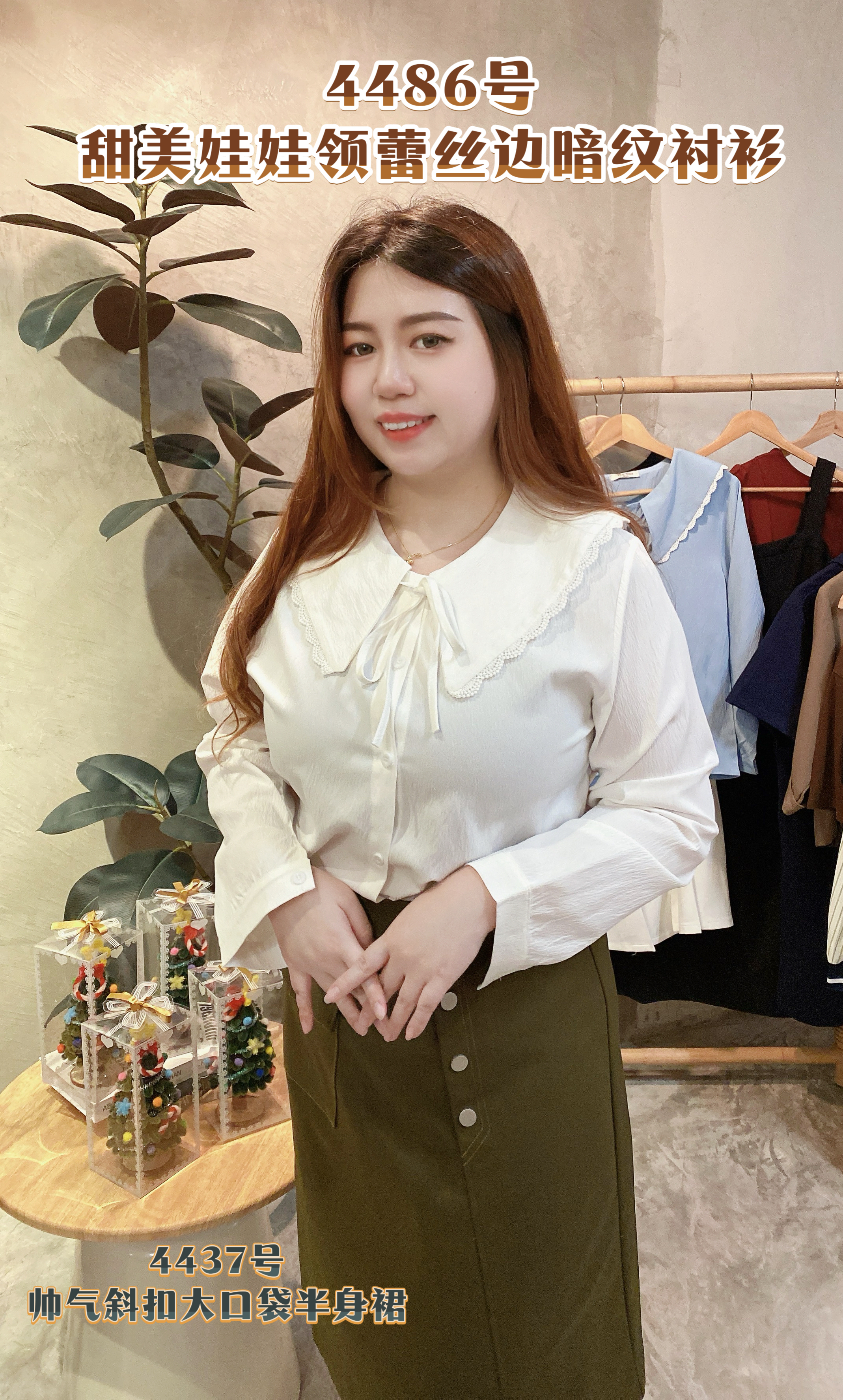🎀4486号-甜美娃娃领蕾丝边暗纹衬衫