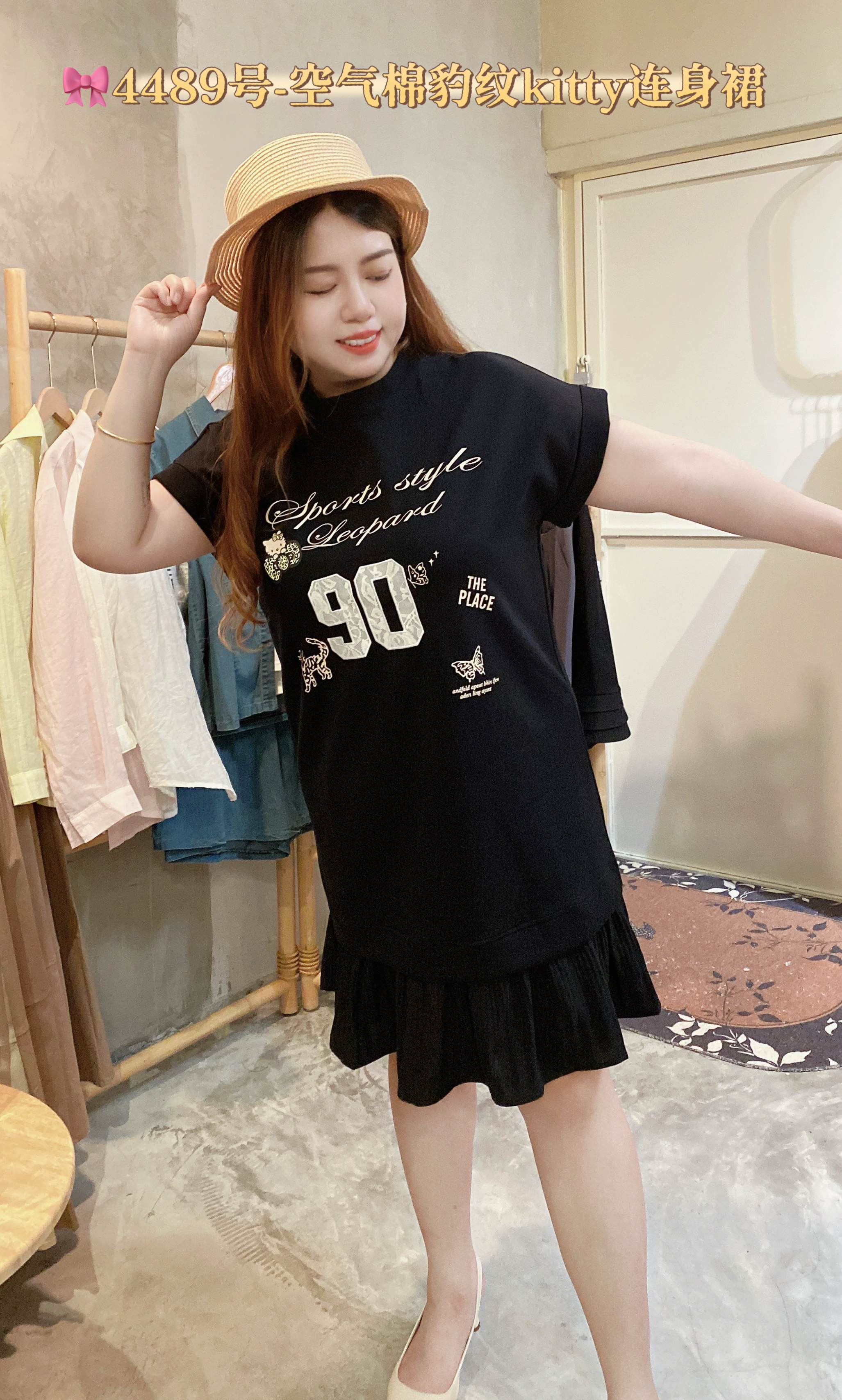 🎀4489号-空气棉豹纹kitty连身裙
