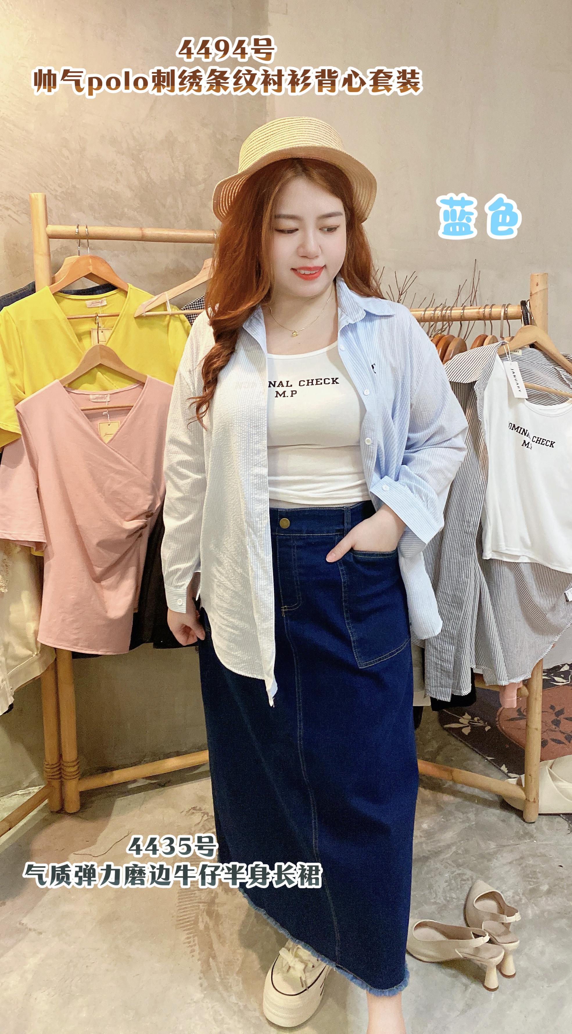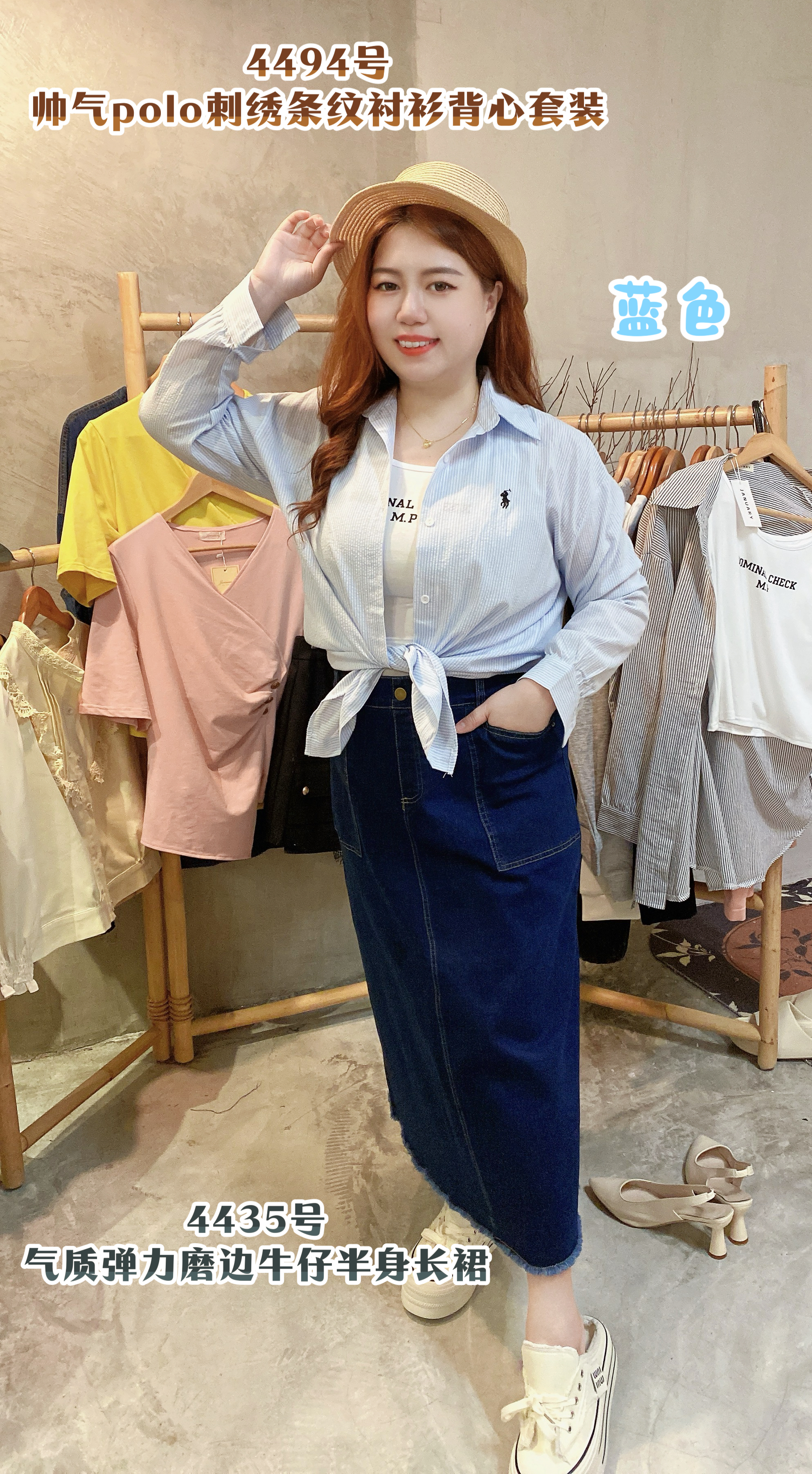 蓝色BL,灰色GY 衬衫胸围平铺124cm内 衣长69cm 背心胸围平铺84-120cm 衣长45cm 💰RM79