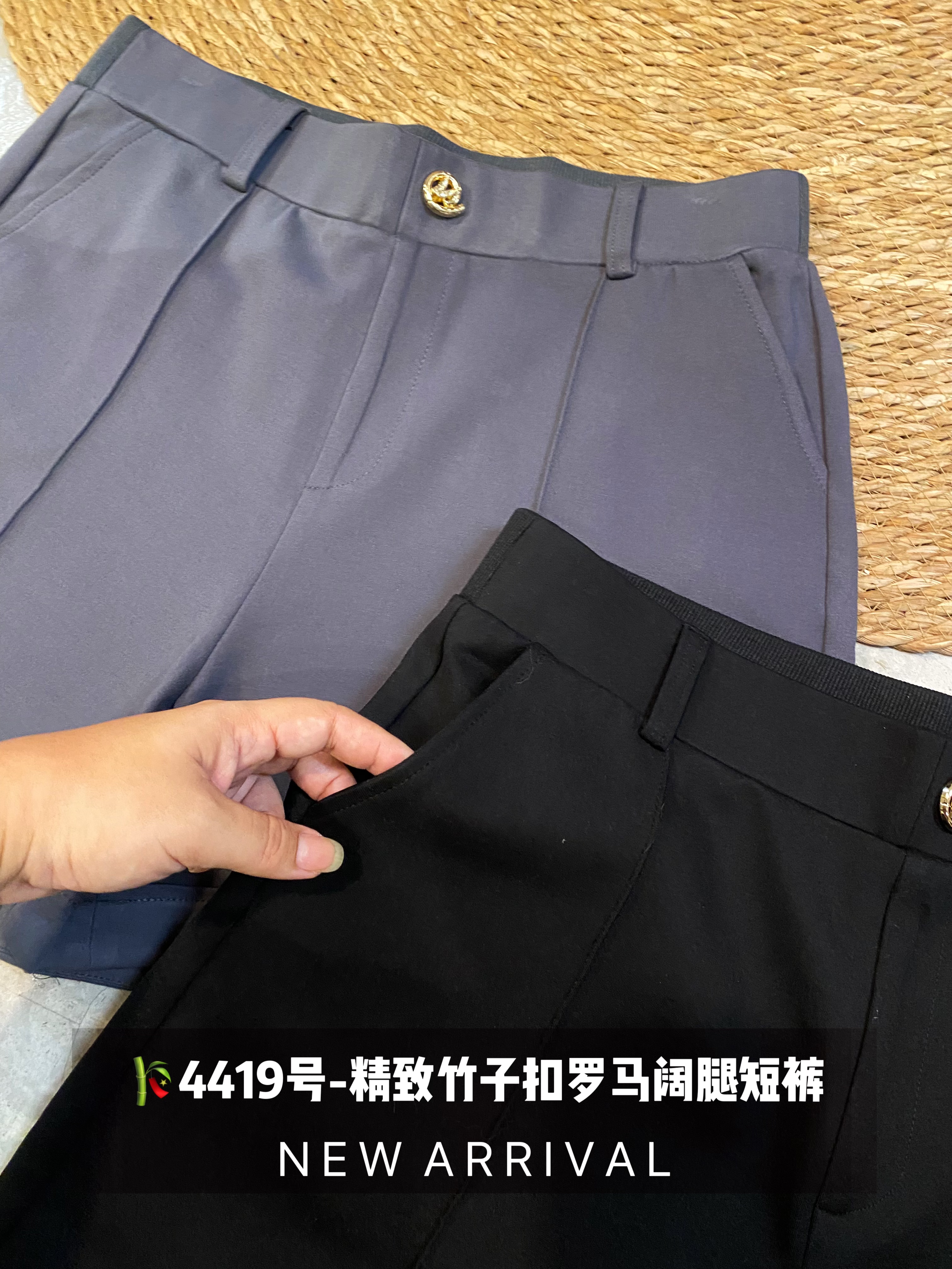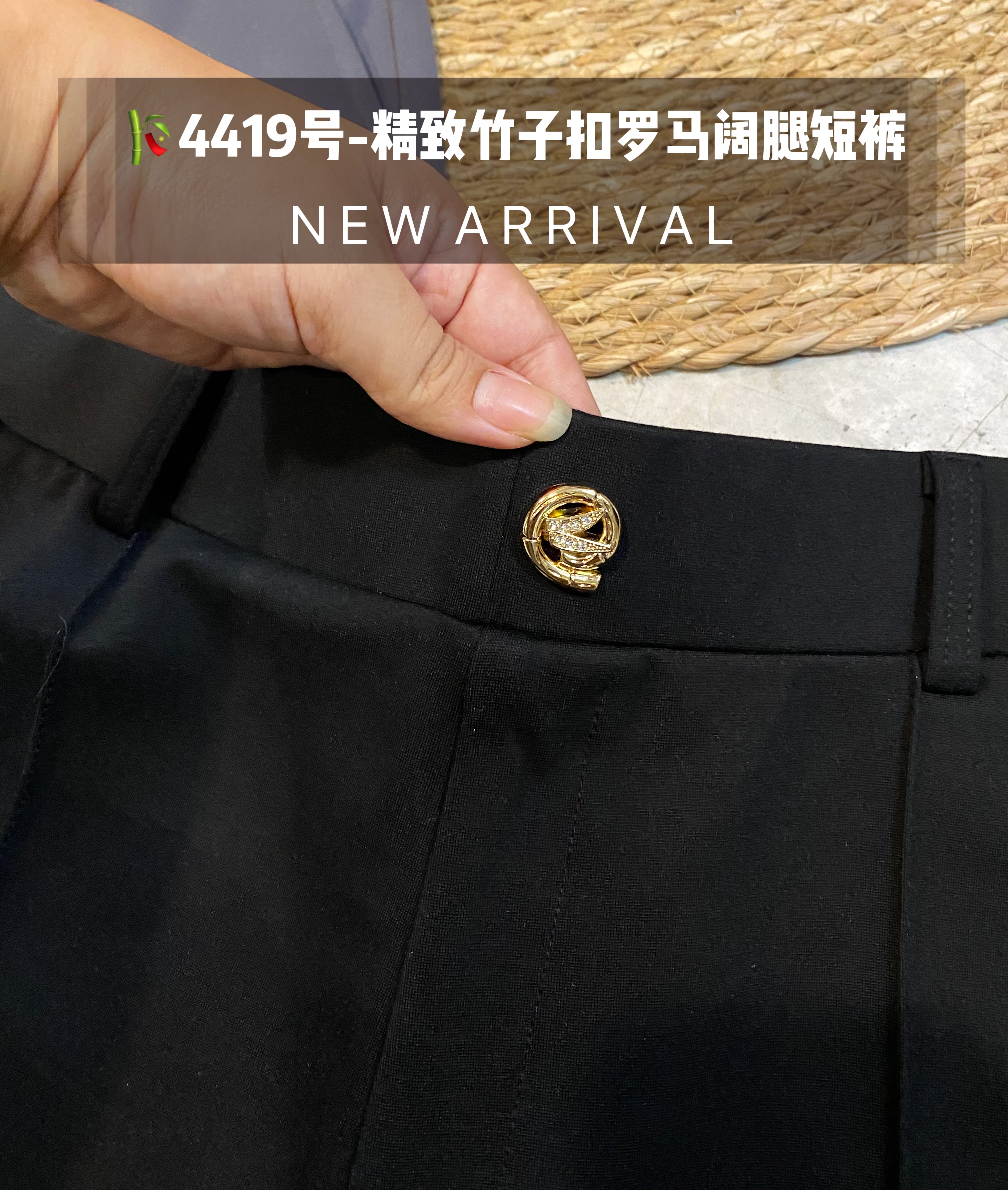🎋4419号-精致竹子扣罗马阔腿短裤。