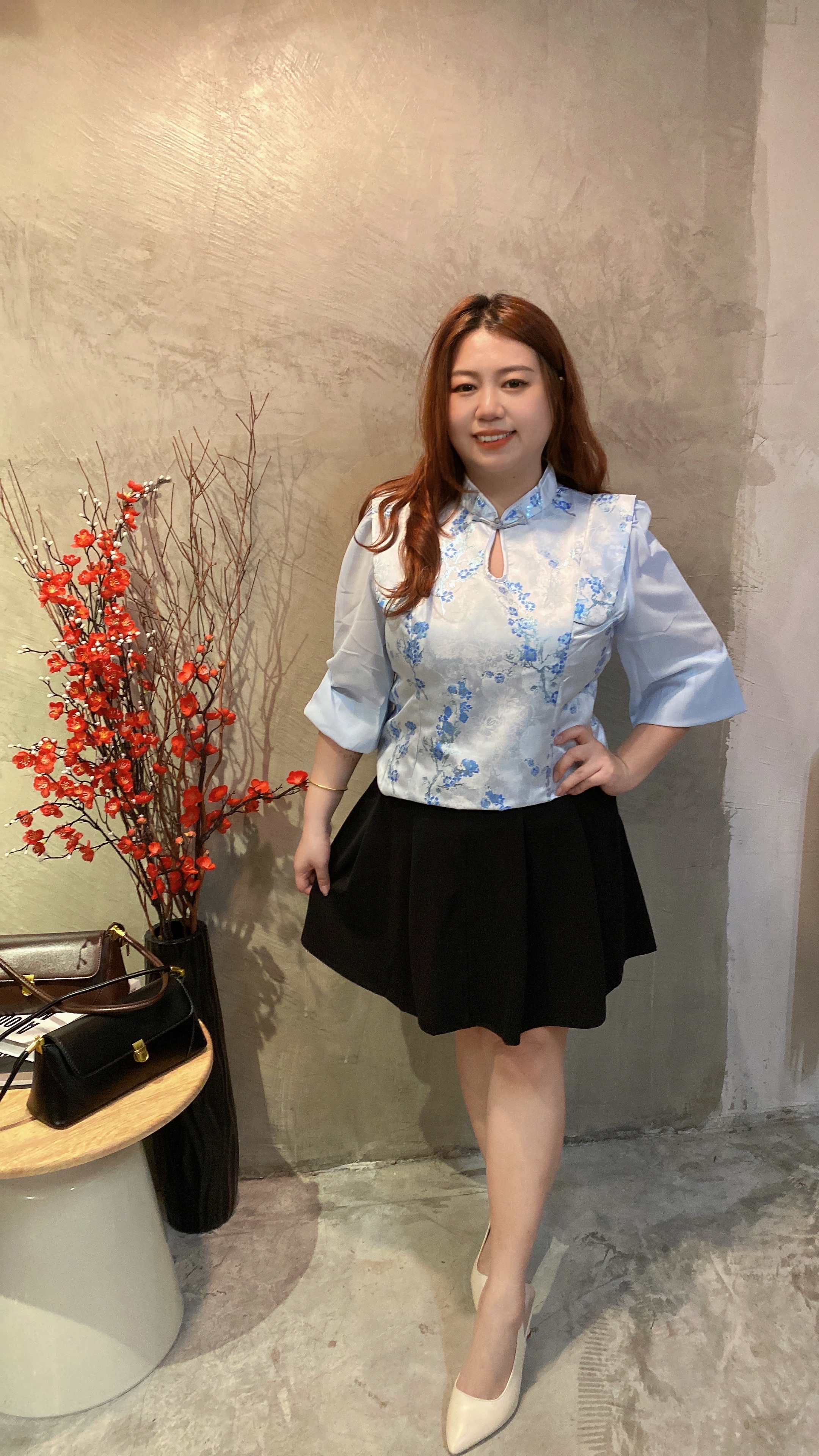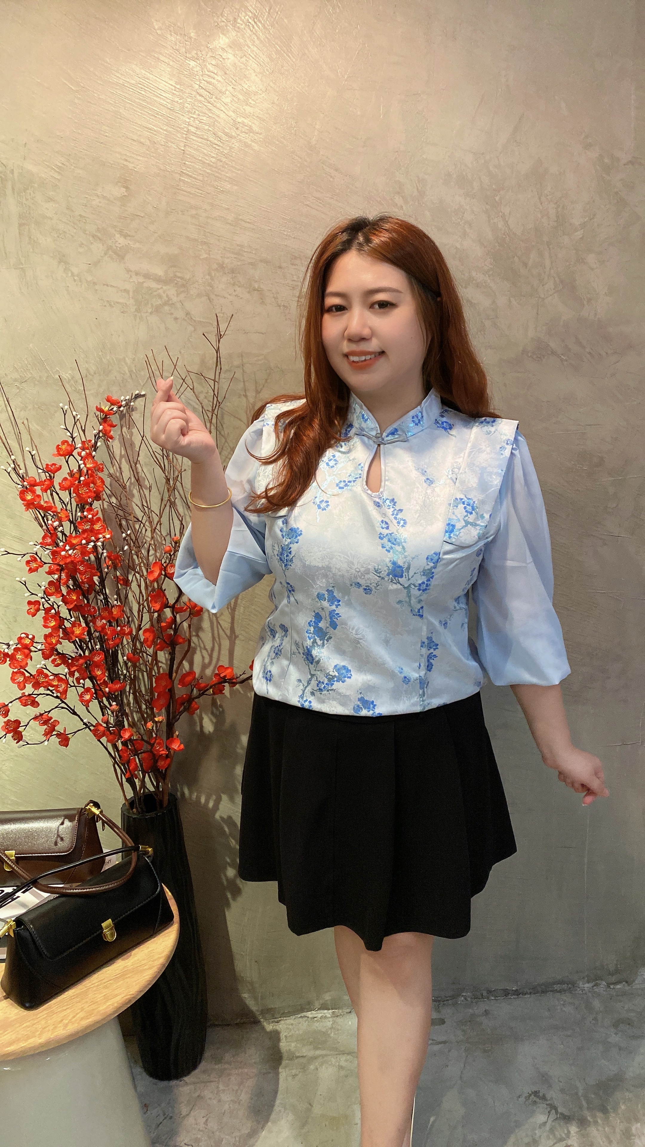 🧧 4571号-天蓝色旗袍网纱袖上衣