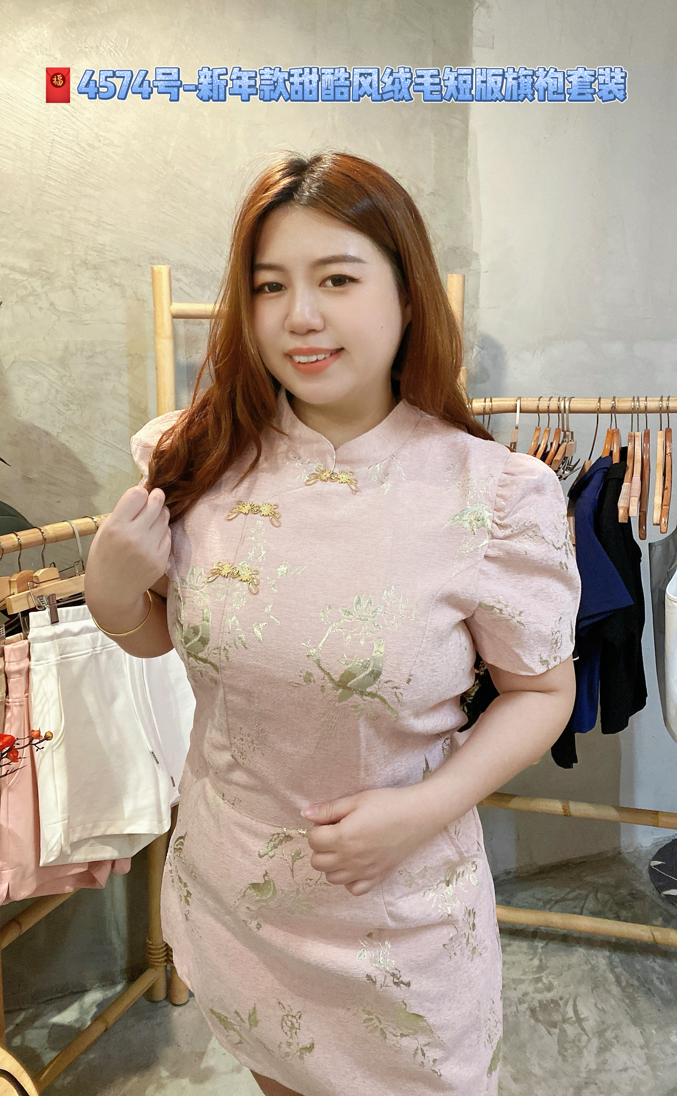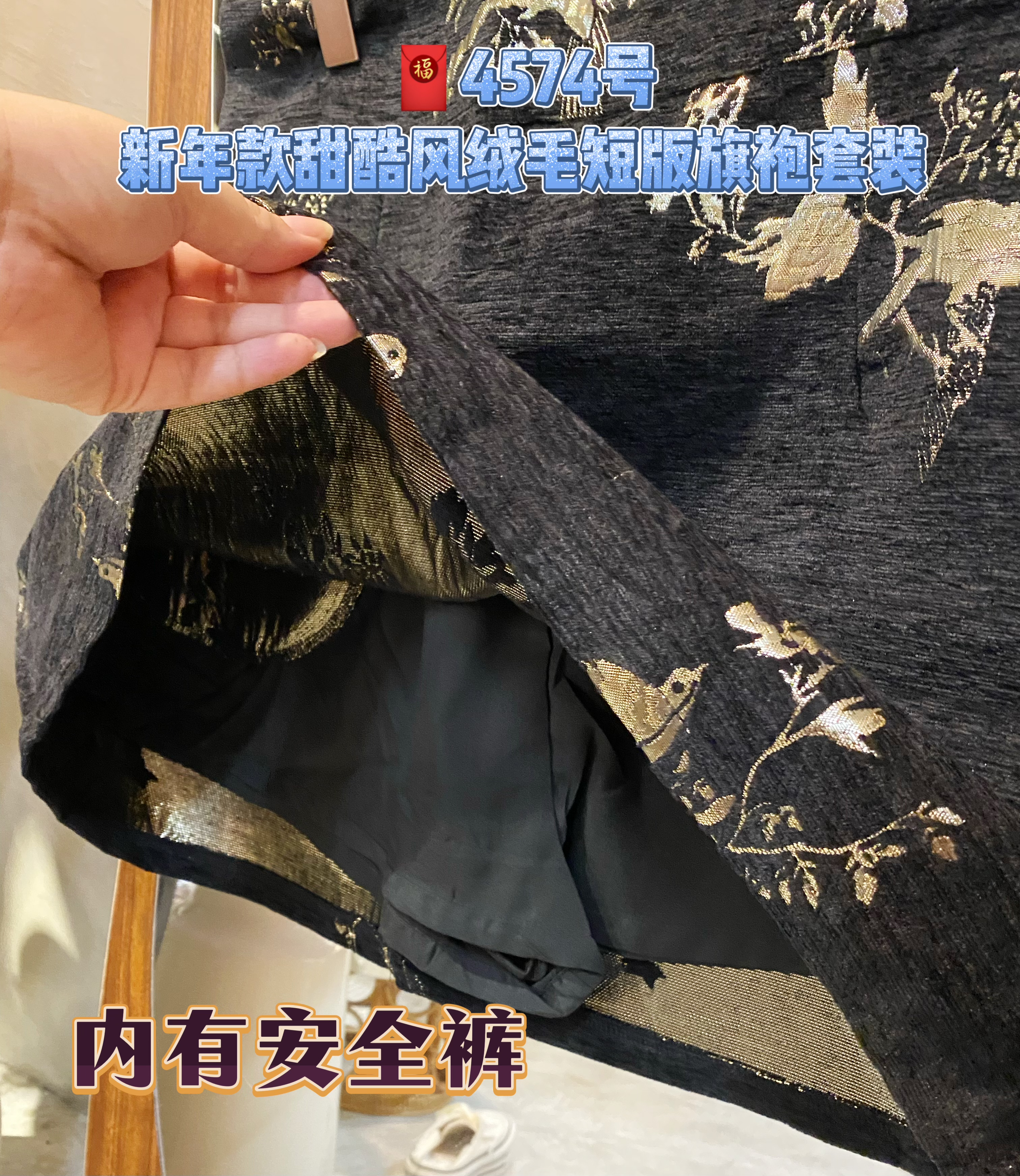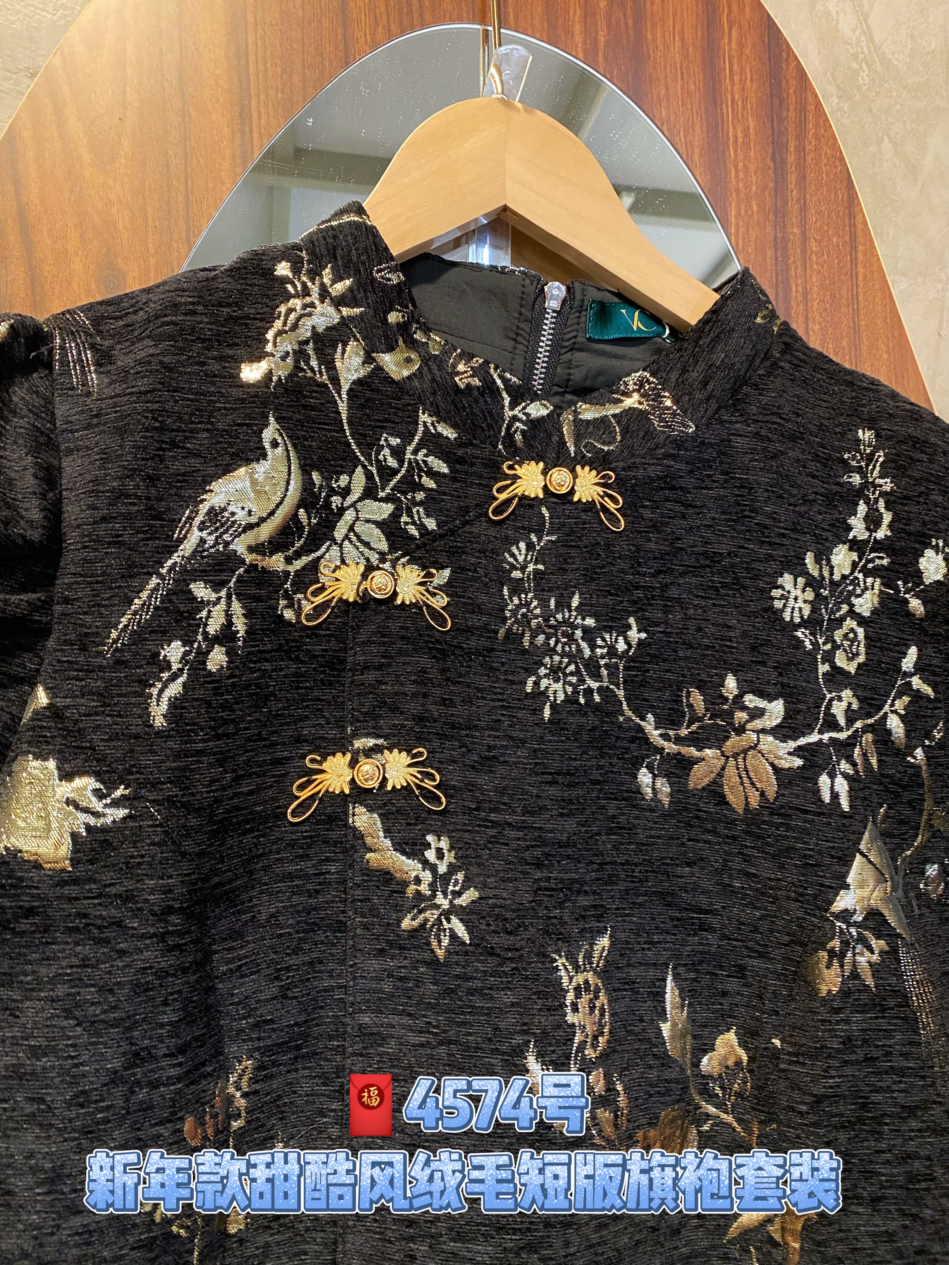 🧧4574号-新年款甜酷风绒毛短版旗袍套装