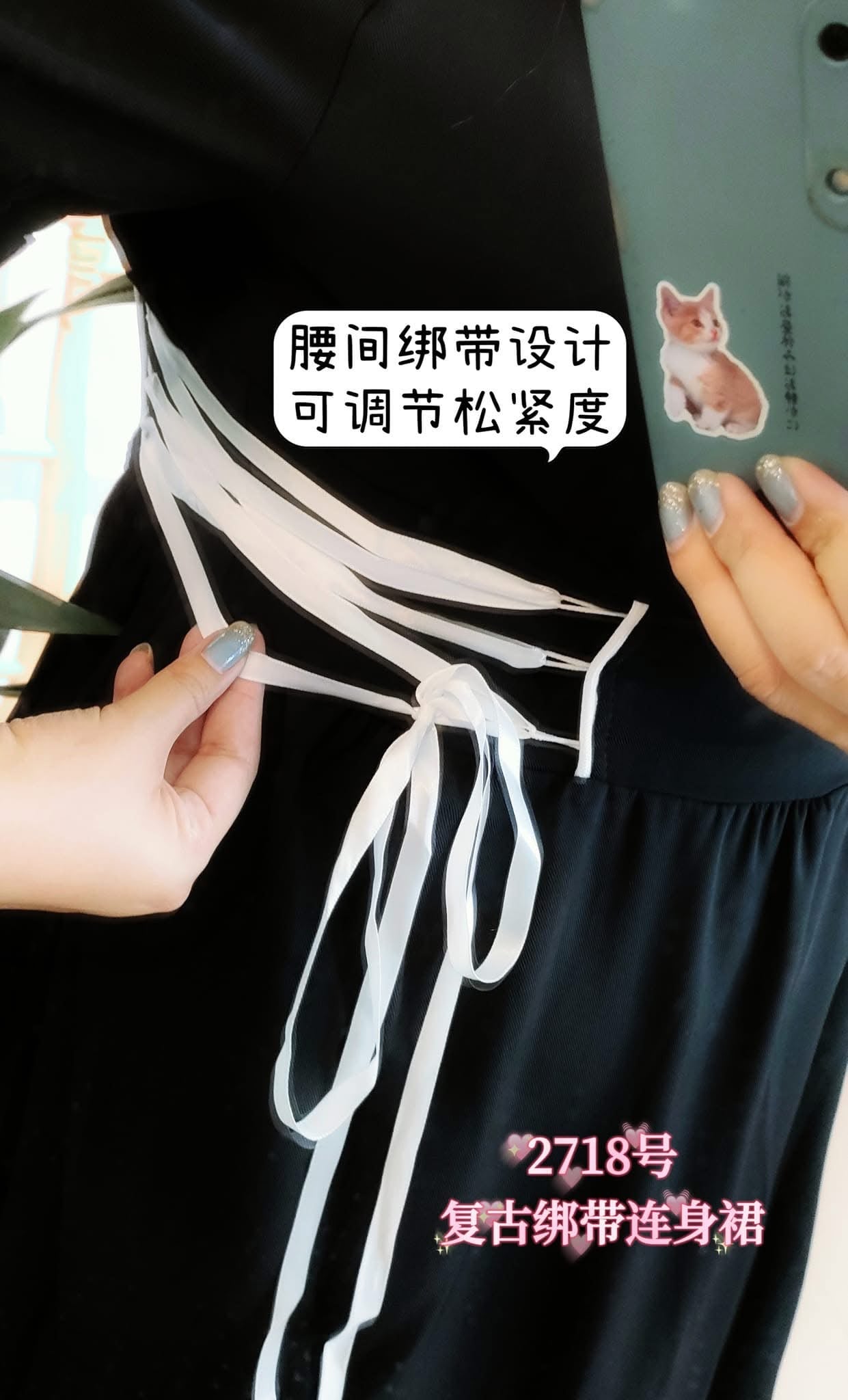 2718号 - 复古绑带连身裙