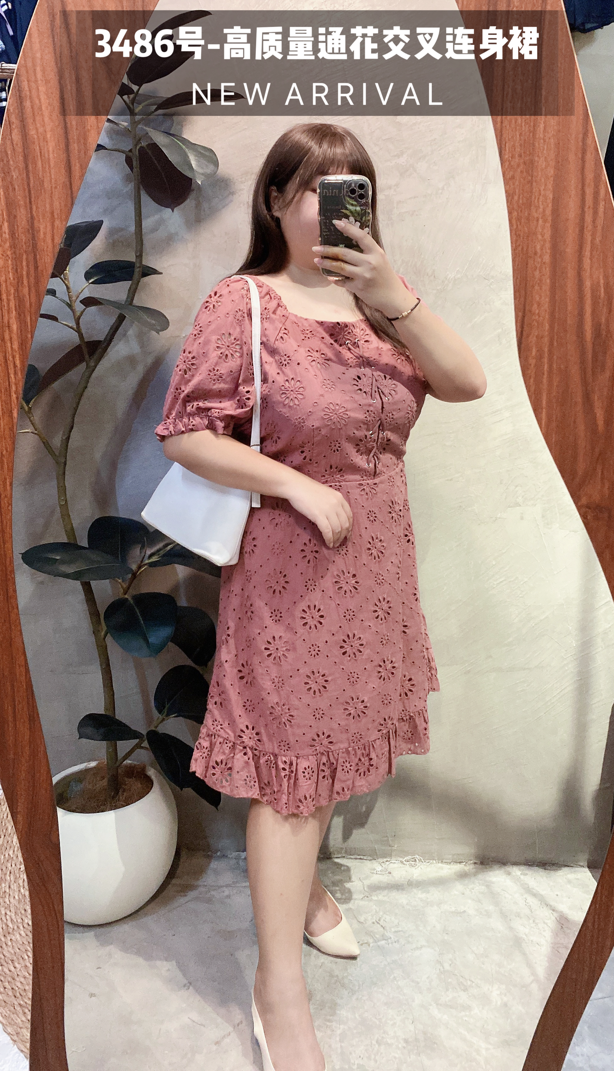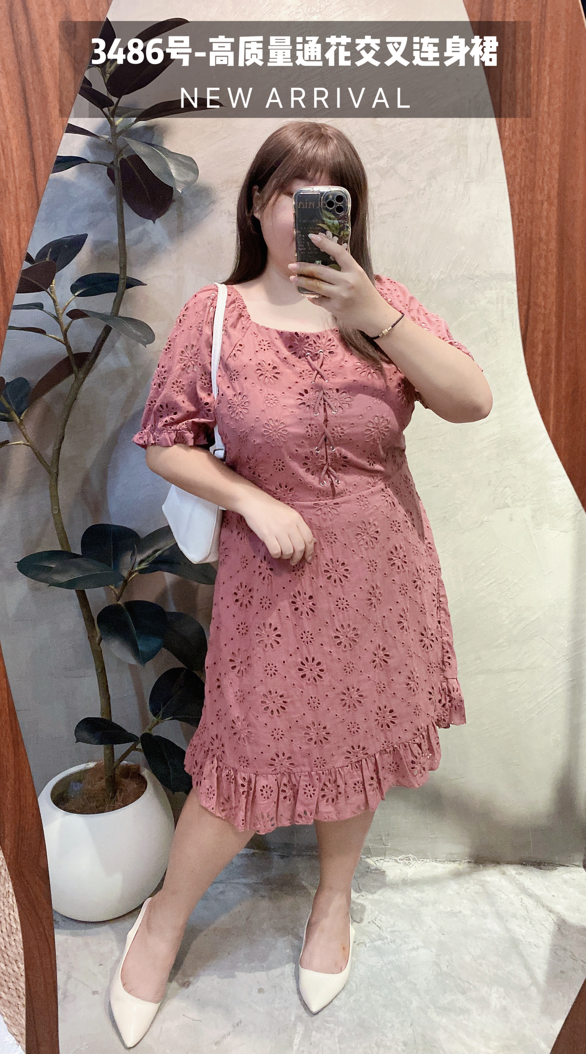 3486号-高质量通花交叉连身裙