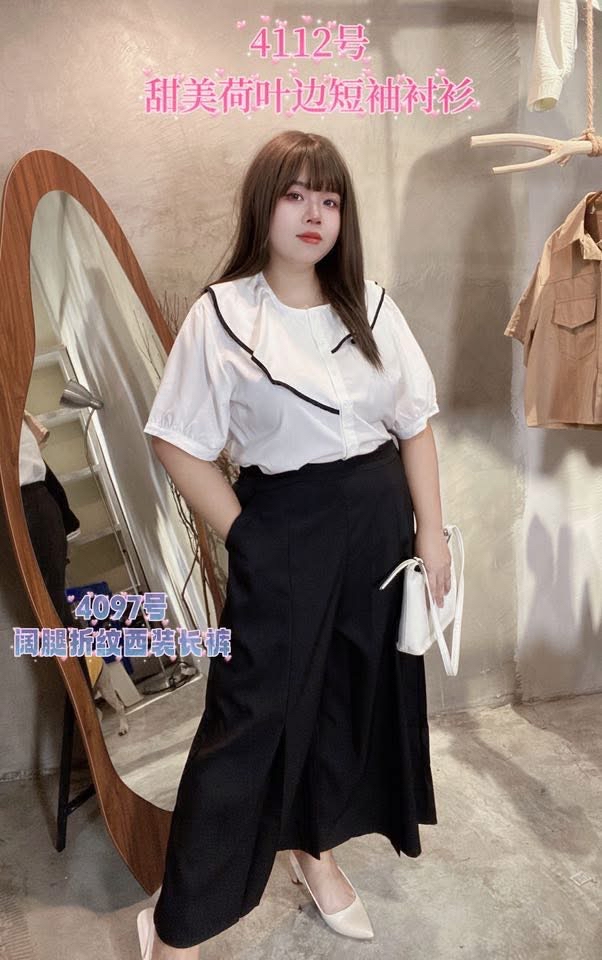 4097号-阔腿折纹西装长裤