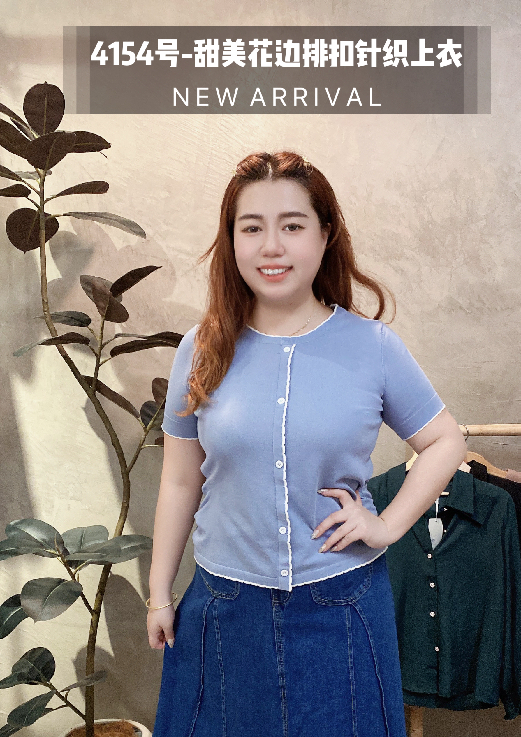 4154号-甜美花边排扣针织上衣